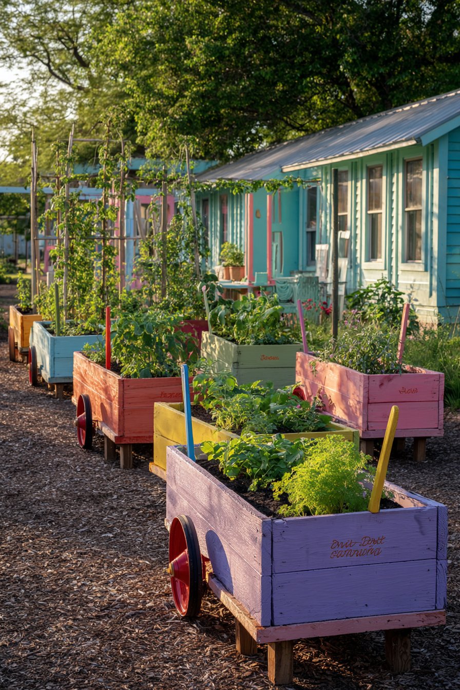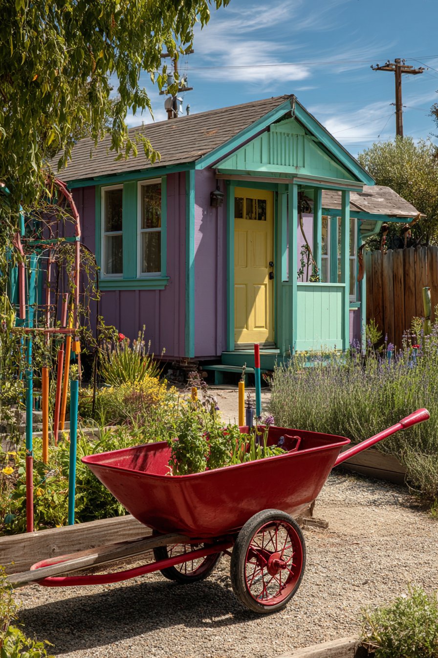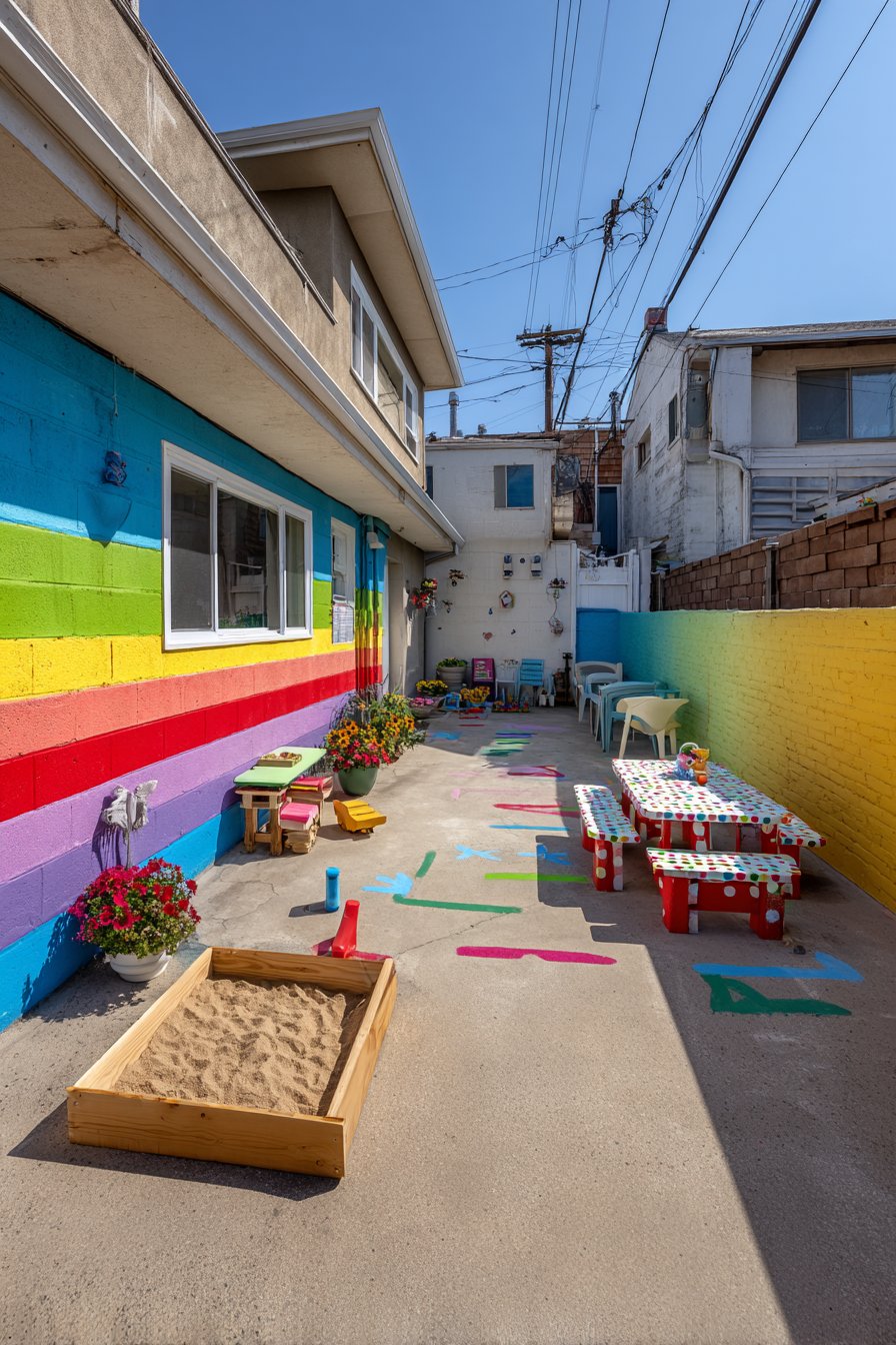 Functionality remains paramount despite bold aesthetic choices. Outdoor kitchens incorporate practical work zones within colorful cabinetry. Children’s play areas combine safety features with rainbow learning opportunities. Vegetable gardens maintain productive growing spaces while celebrating painted structures. These designs prove color enhances rather than compromises functionality.