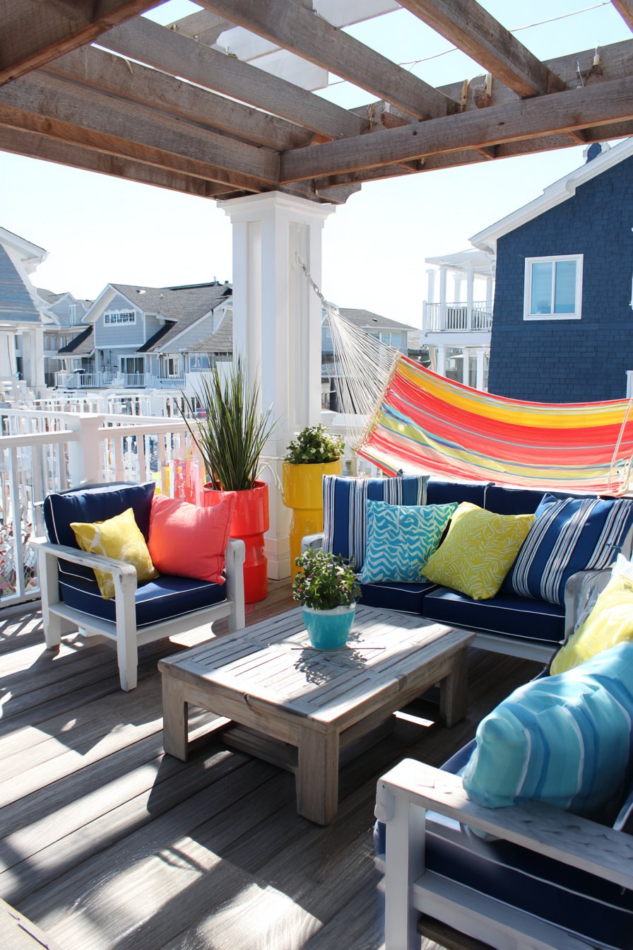 13. Coastal Beach Deck with Ocean-Inspired Brights