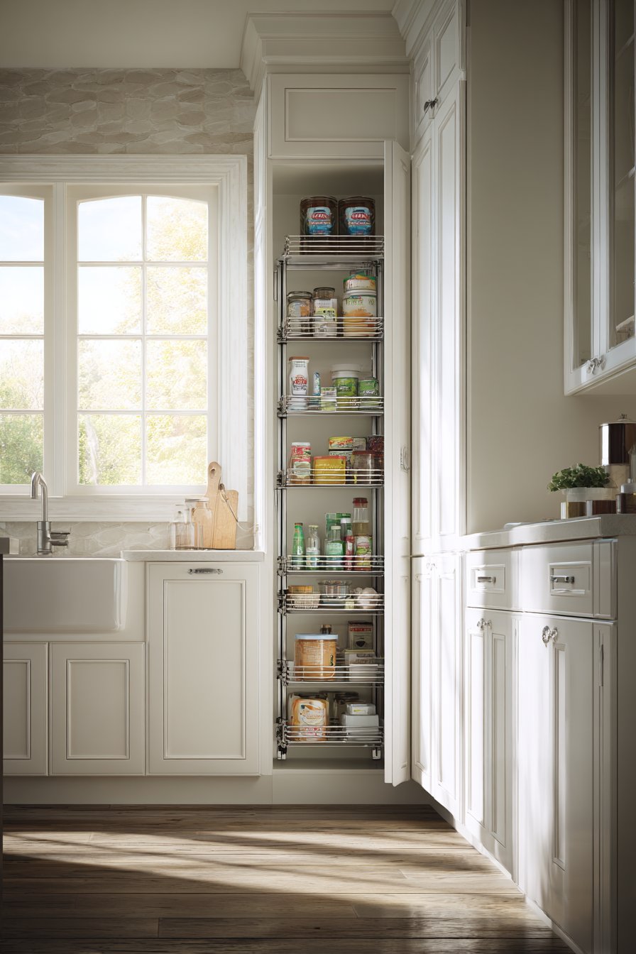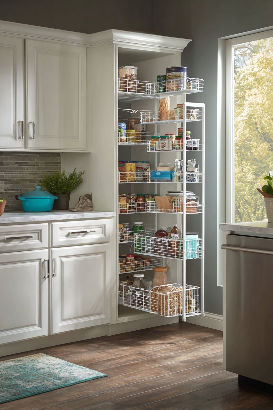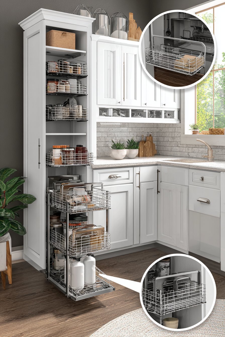 8. Vertical Pull-Out Corner Pantry for Small Spaces