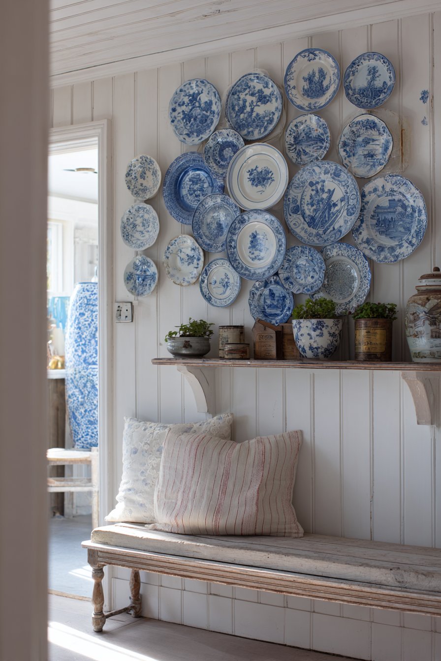 - Collect blue and white vintage plates in varied patterns for cottage displays