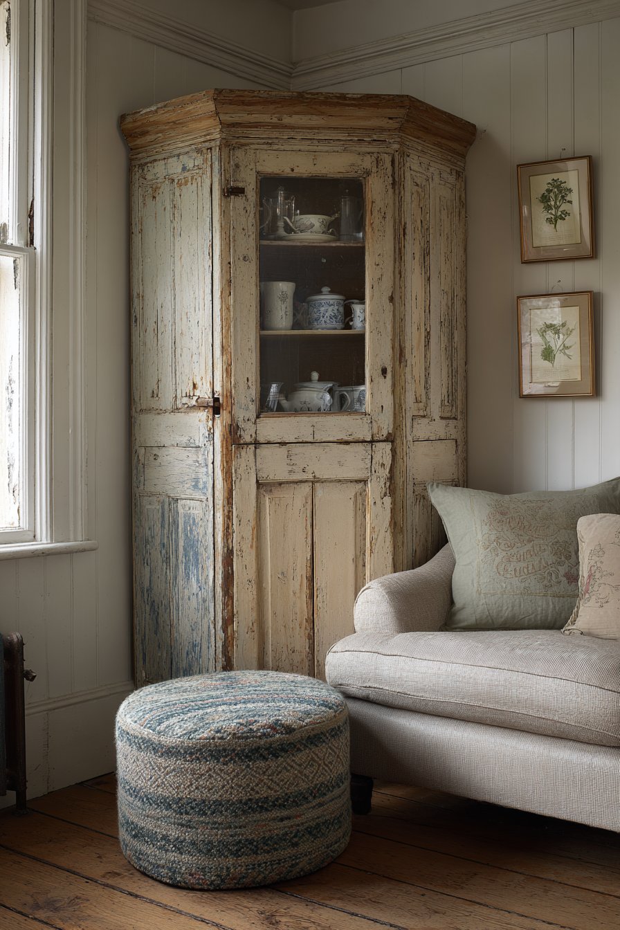 - Choose antique corner cupboards for cottage storage maximizing compact spaces