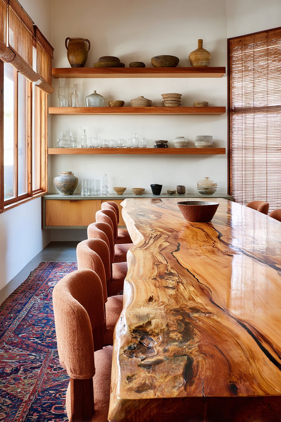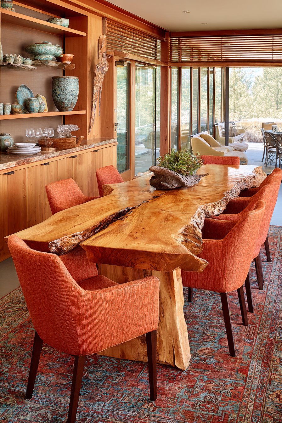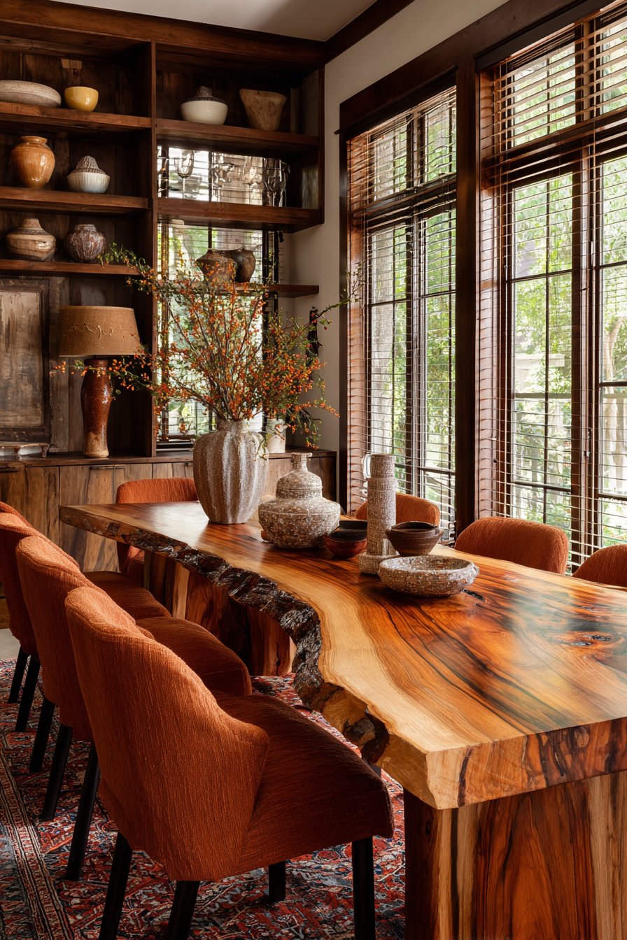 3. Live-Edge Table with Terracotta and Earth Tones