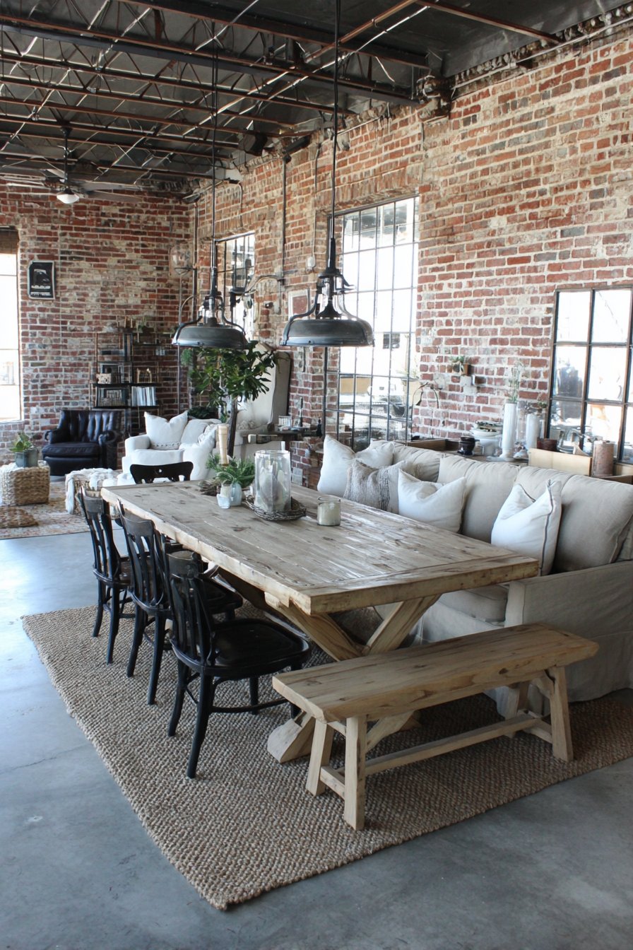 - Combine rustic and industrial elements in roughly equal proportions