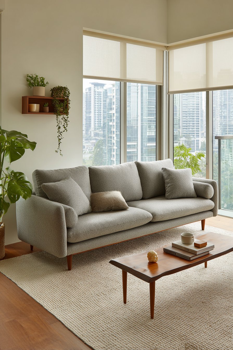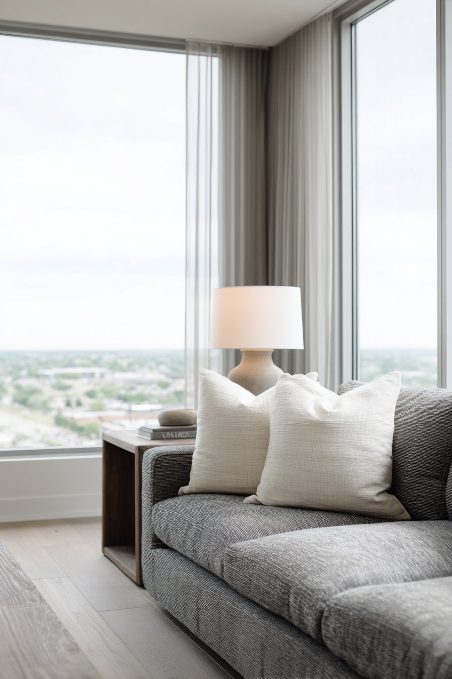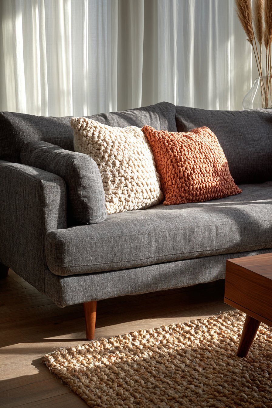 - Keep pillow count minimal with just two or three per sofa