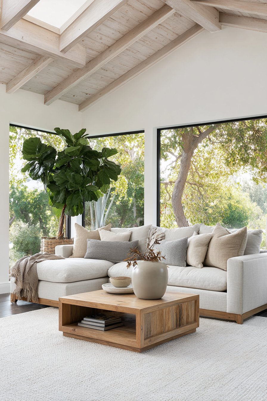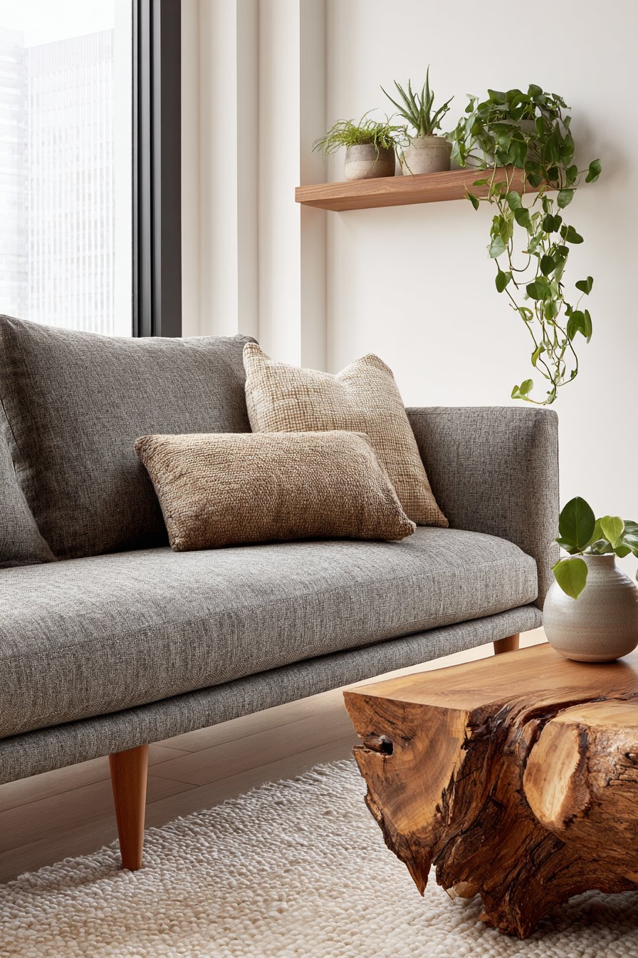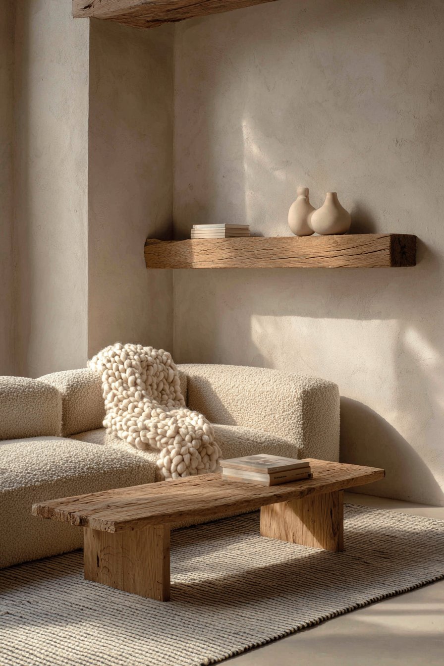 - Layer natural textures like jute, linen, and oak for visual depth