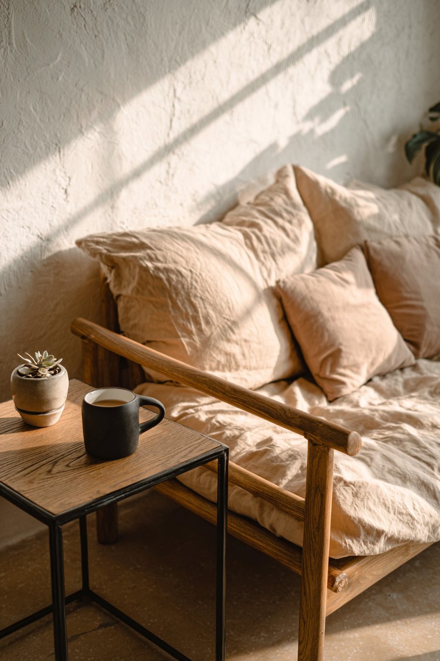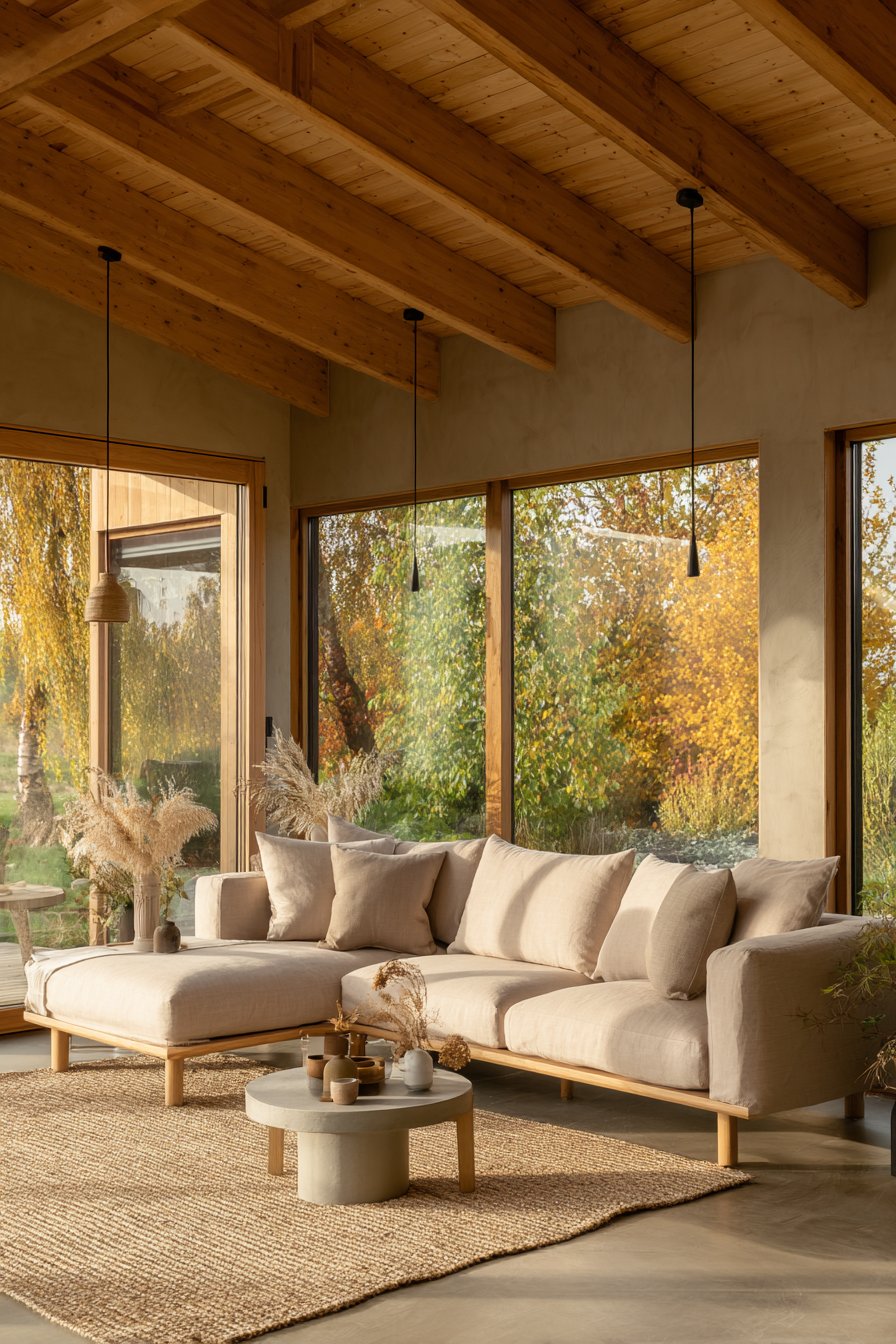 - Choose warm neutral fabrics like oatmeal, cream, or natural linen