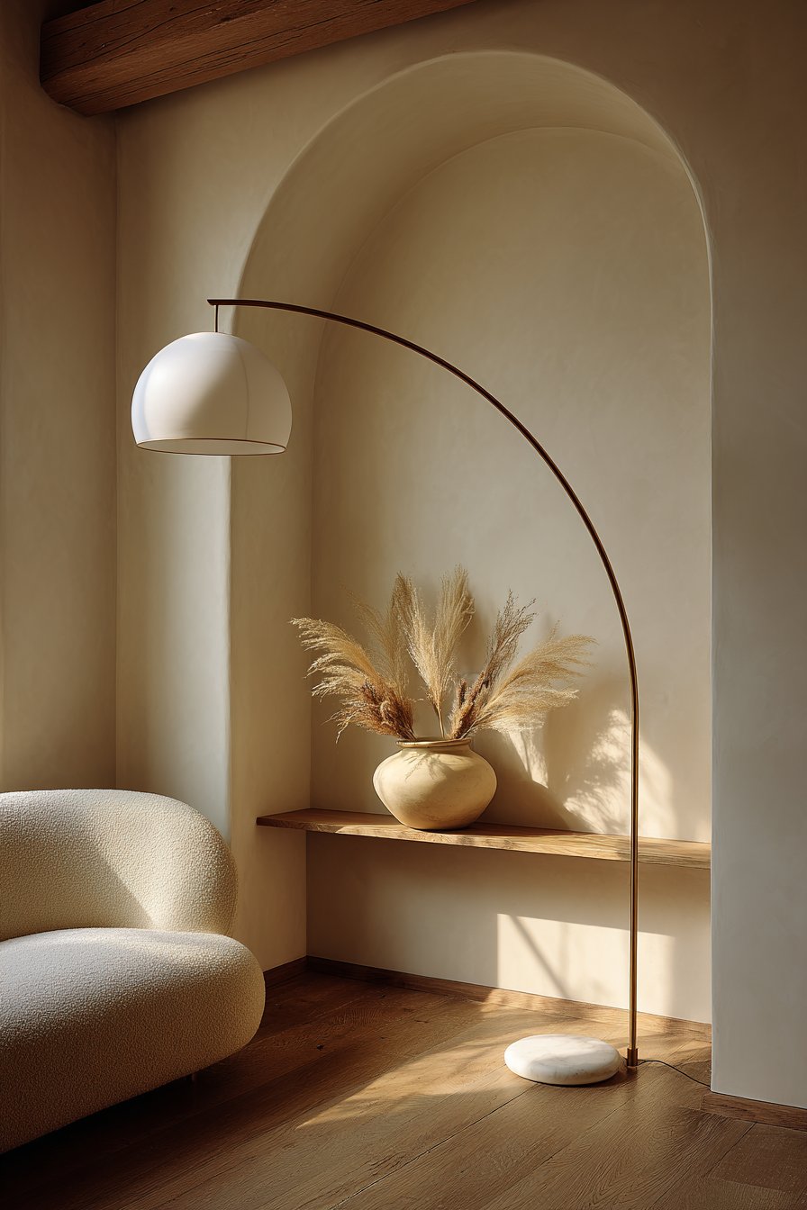 - Use one sculptural floor lamp instead of multiple light sources