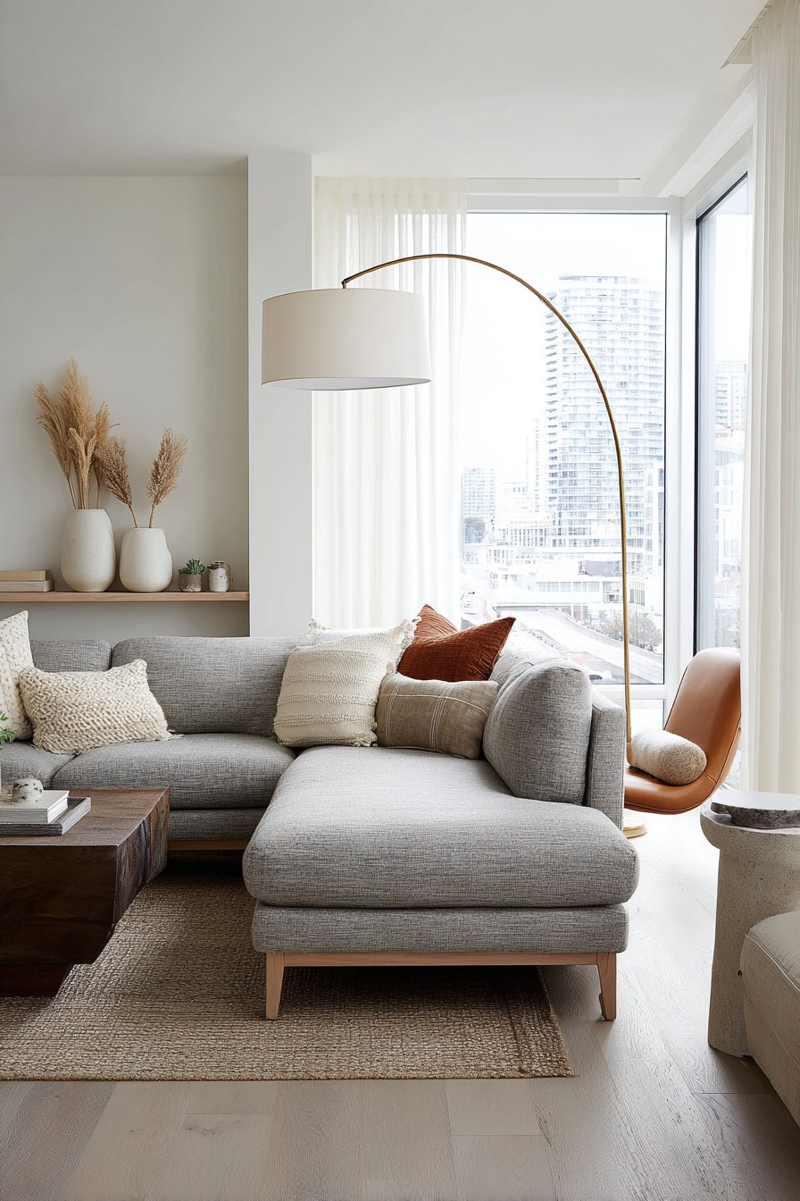The thoughtful spatial arrangement demonstrates how modular furniture adapts to various needs and occasions. The sectional can be reconfigured as living patterns change. Natural lighting throughout the day transforms the space’s mood and atmosphere. Professional composition reveals how careful planning creates both beauty and functionality.