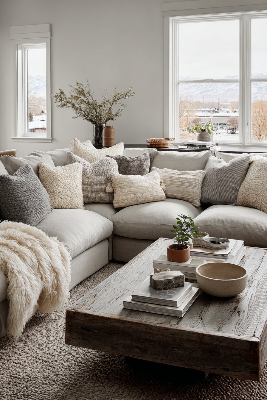 - Mix pillow textures in coordinating neutral tones for dimensional interest
