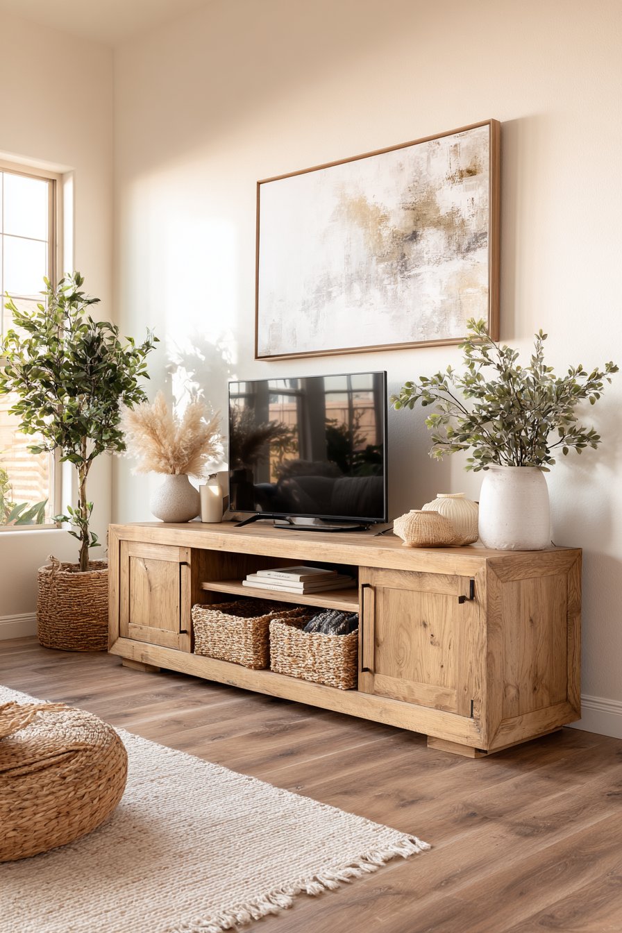 4. Natural Oak Media Console Composition