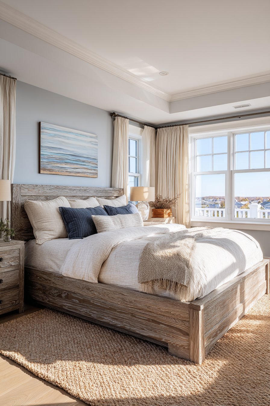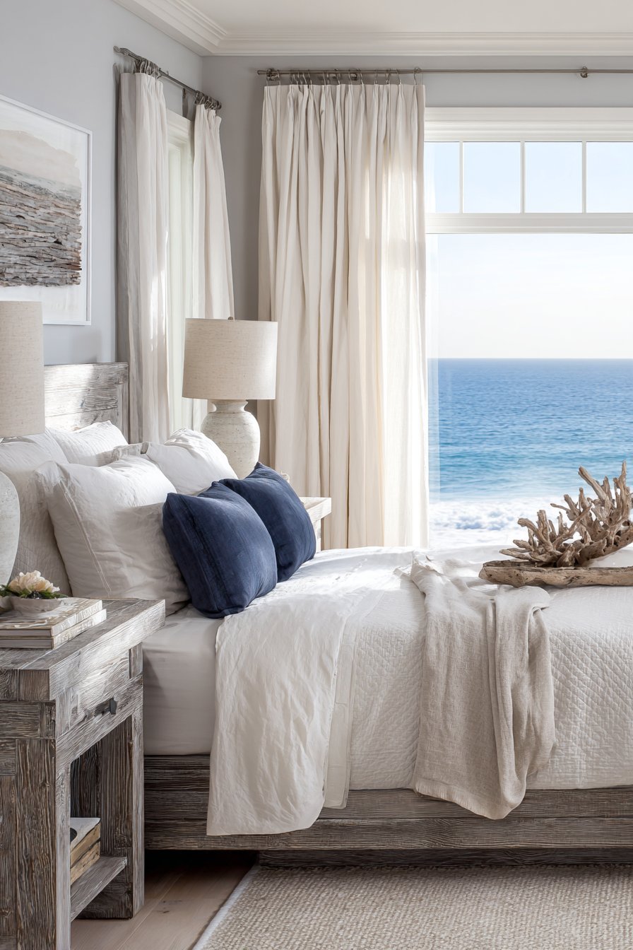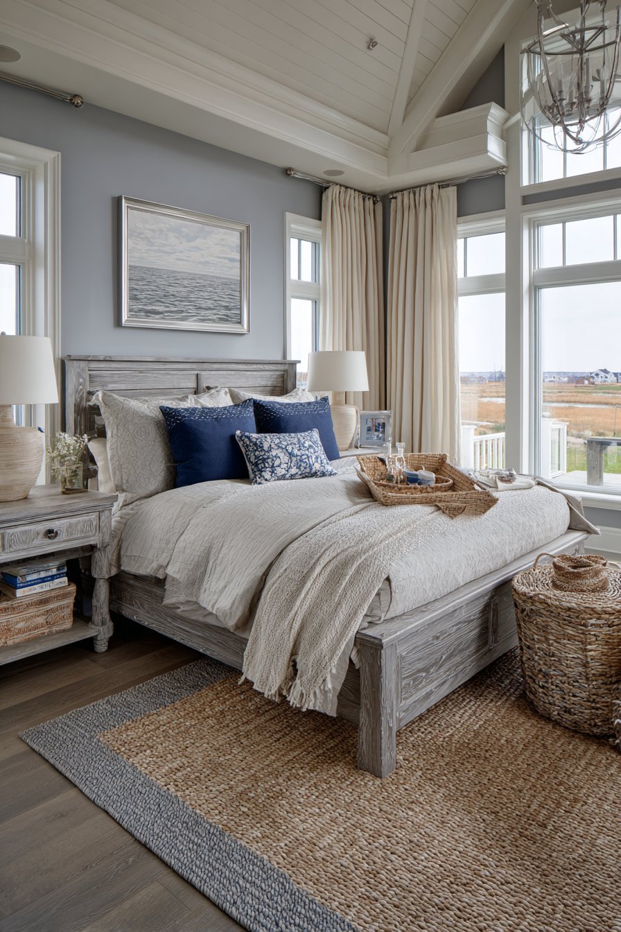 - Paint walls in soft blue-gray for coastal feel