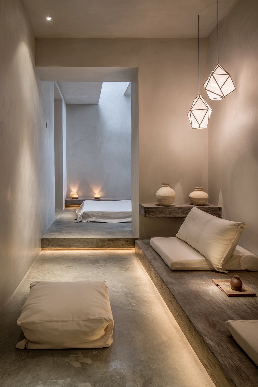 This minimal space demonstrates the power of restraint. Every element serves a purpose. Nothing extra disturbs the peaceful environment.