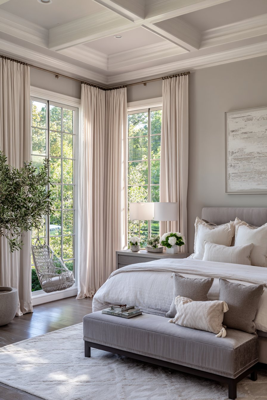 This bedroom demonstrates that gray and cream can feel truly luxurious. Quality materials elevate the simple palette. Attention to detail appears in every element.