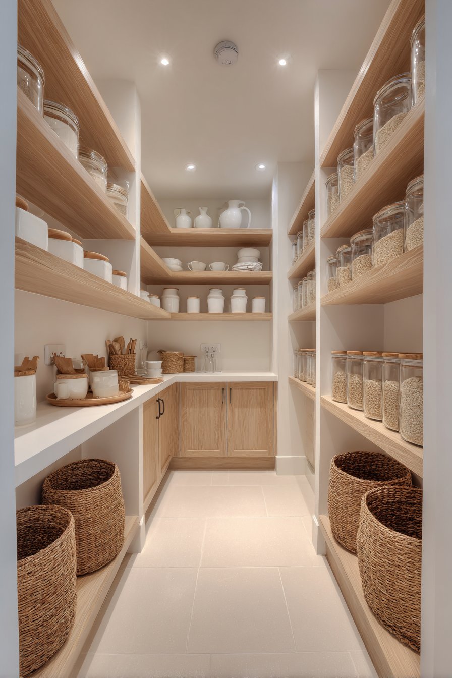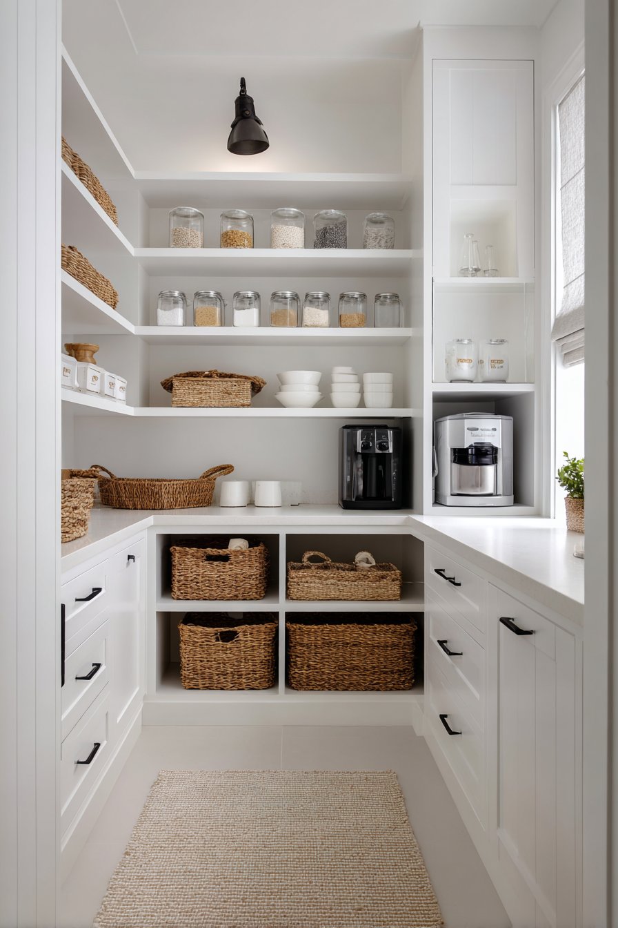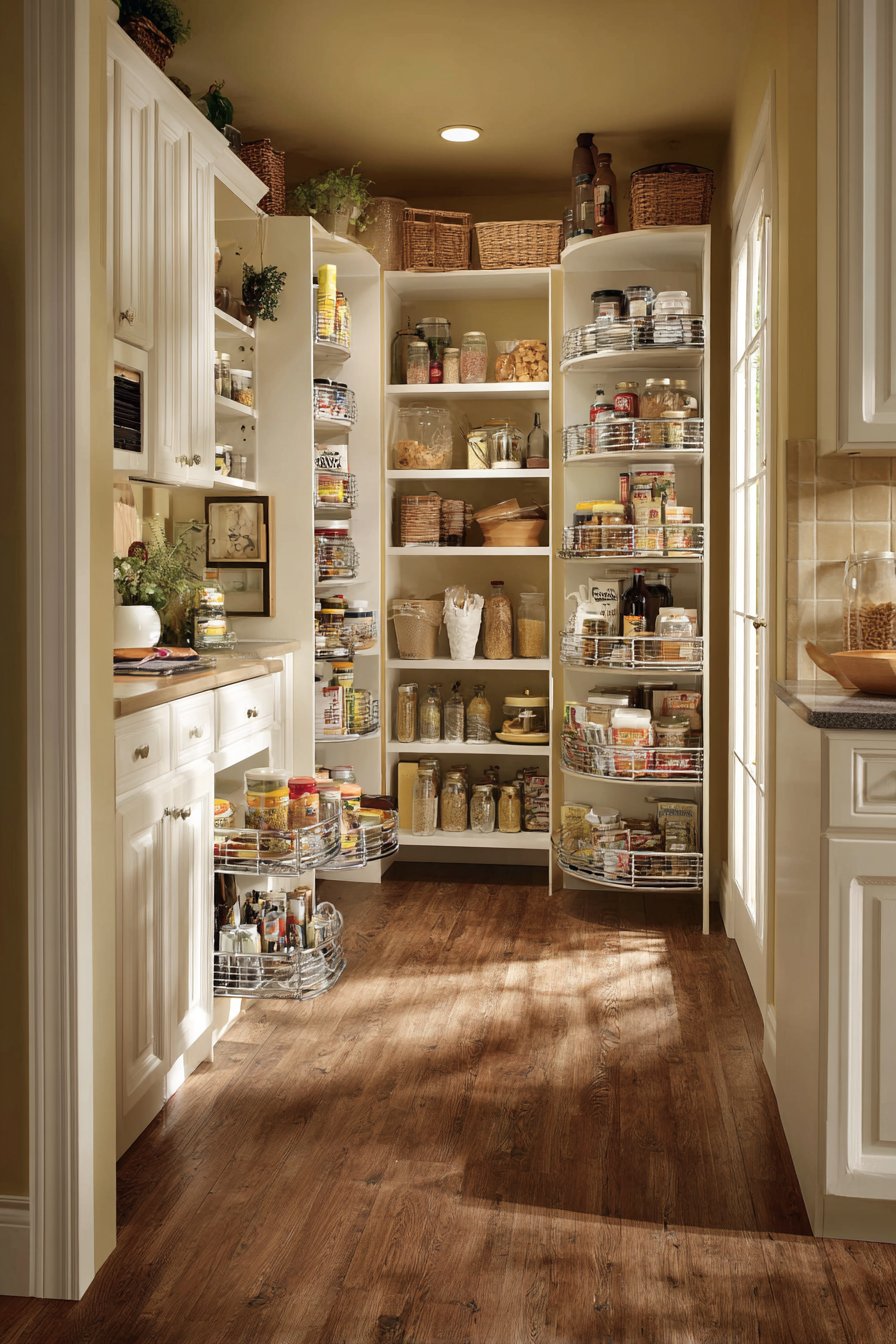 These L-shaped pantry designs represent optimal solutions for maximizing corner storage efficiency. The configuration naturally utilizes two adjoining walls that might otherwise create awkward dead space. Each design demonstrates how thoughtful planning transforms difficult corners into highly functional storage areas. The variety of styles ensures compatibility with any home’s existing aesthetic.