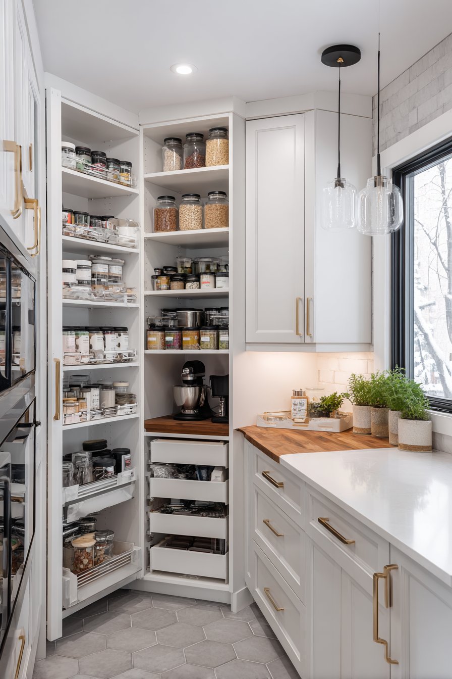 This comprehensive guide explores twenty distinct L-shaped pantry designs. Each concept demonstrates unique approaches to materials, lighting, and organizational systems. You’ll discover solutions ranging from budget-friendly makeovers to luxury custom installations. These designs prove that functional storage can be both practical and visually stunning.