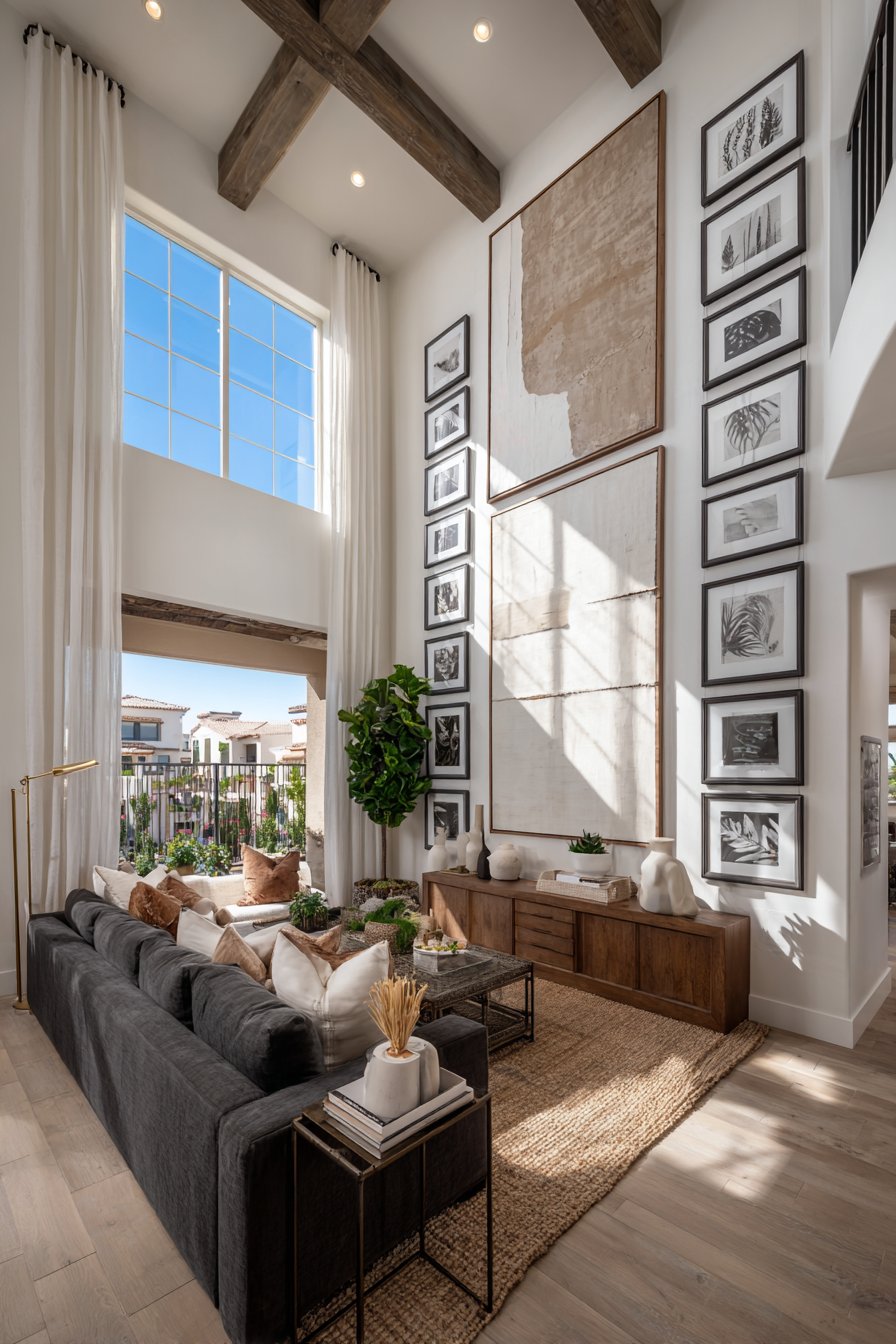 A large blank wall in your living room presents an exciting design opportunity. This expansive canvas can transform your space from ordinary to extraordinary. The right treatment creates focal points that define your room’s character and style.
