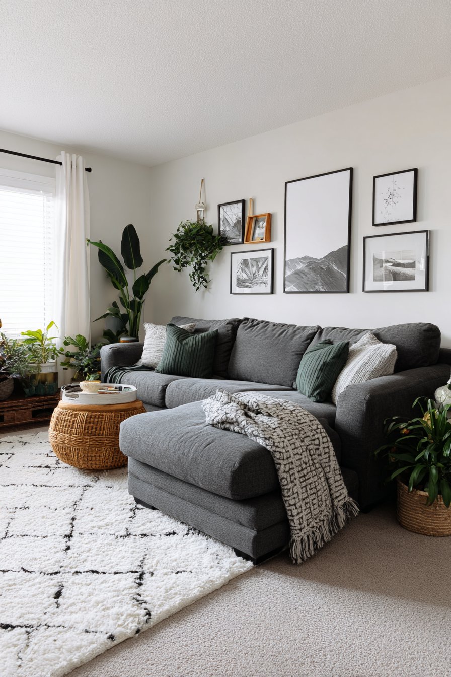 - Layer natural fiber textures throughout the room for cohesion