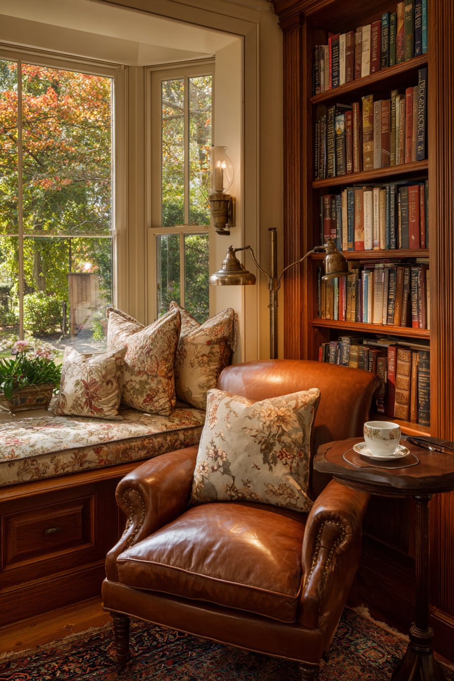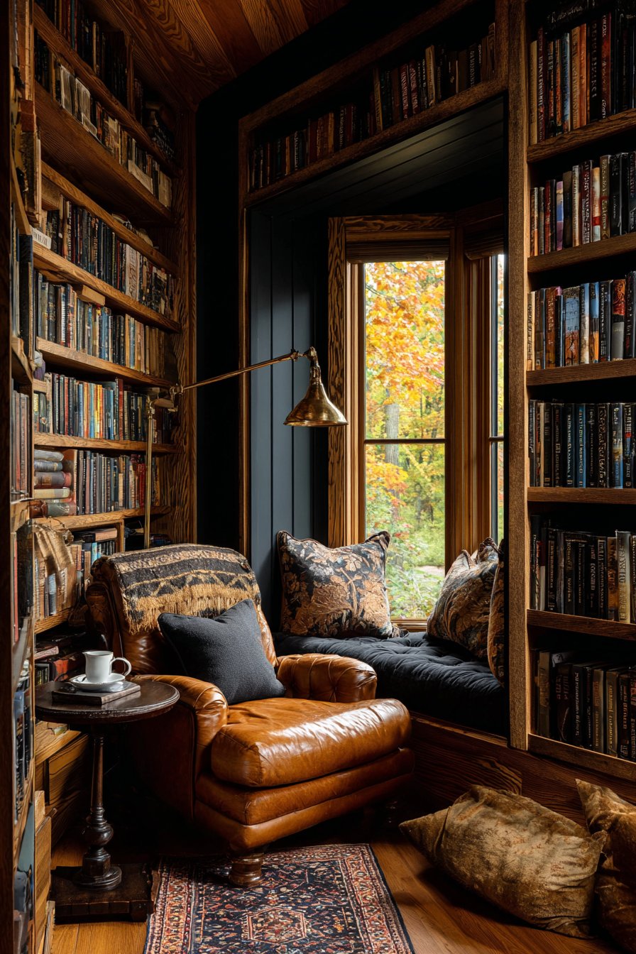 17. Dedicated Reading Nook Deep Leather and Literary Comfort