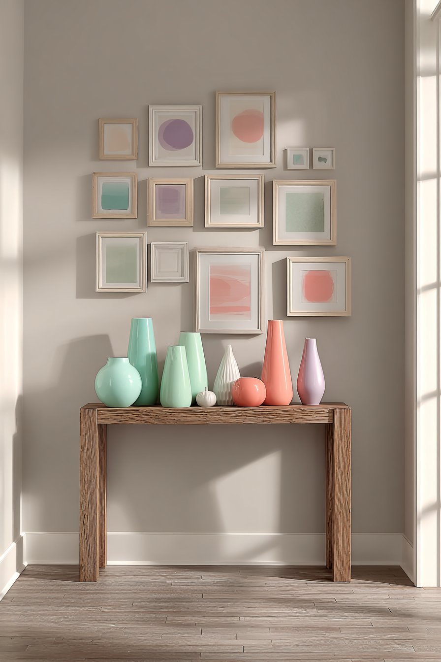 - Select furniture with pastel accent colors rather than full pastel pieces