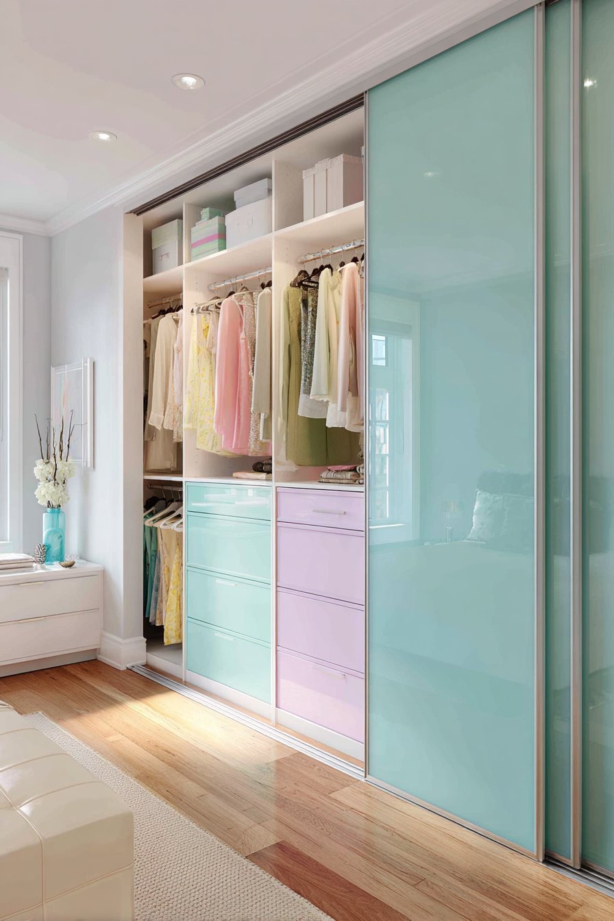 - Organize closet contents by color for visual appeal through frosted glass