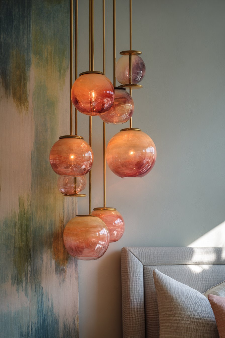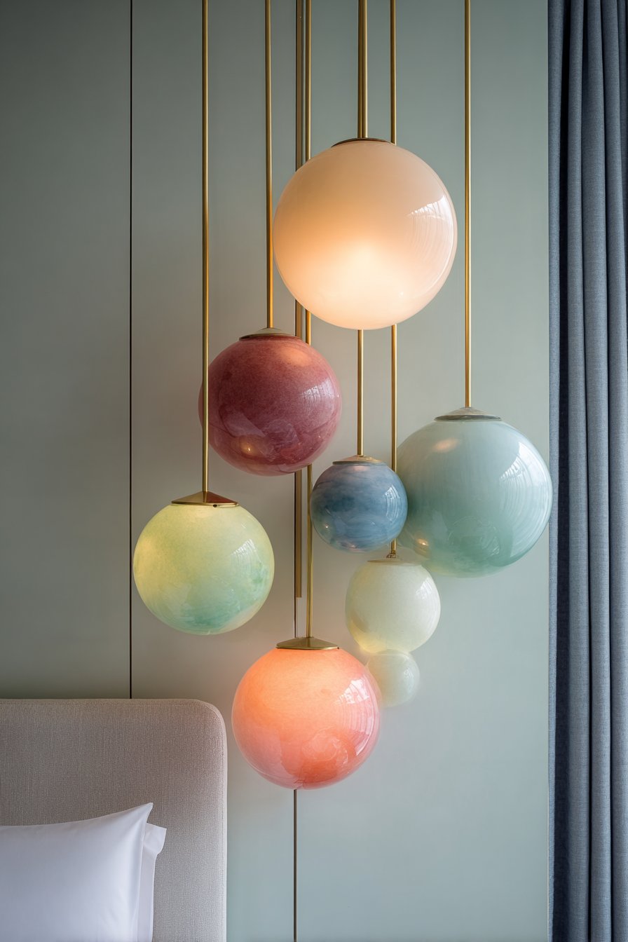 - Coordinate pendant colors with other pastel elements throughout room