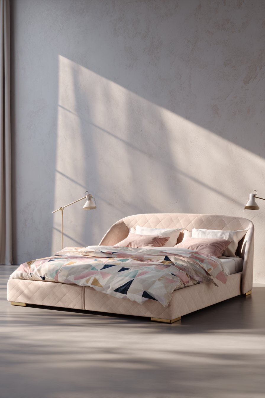 - Choose oversized curved headboards for dramatic sculptural impact