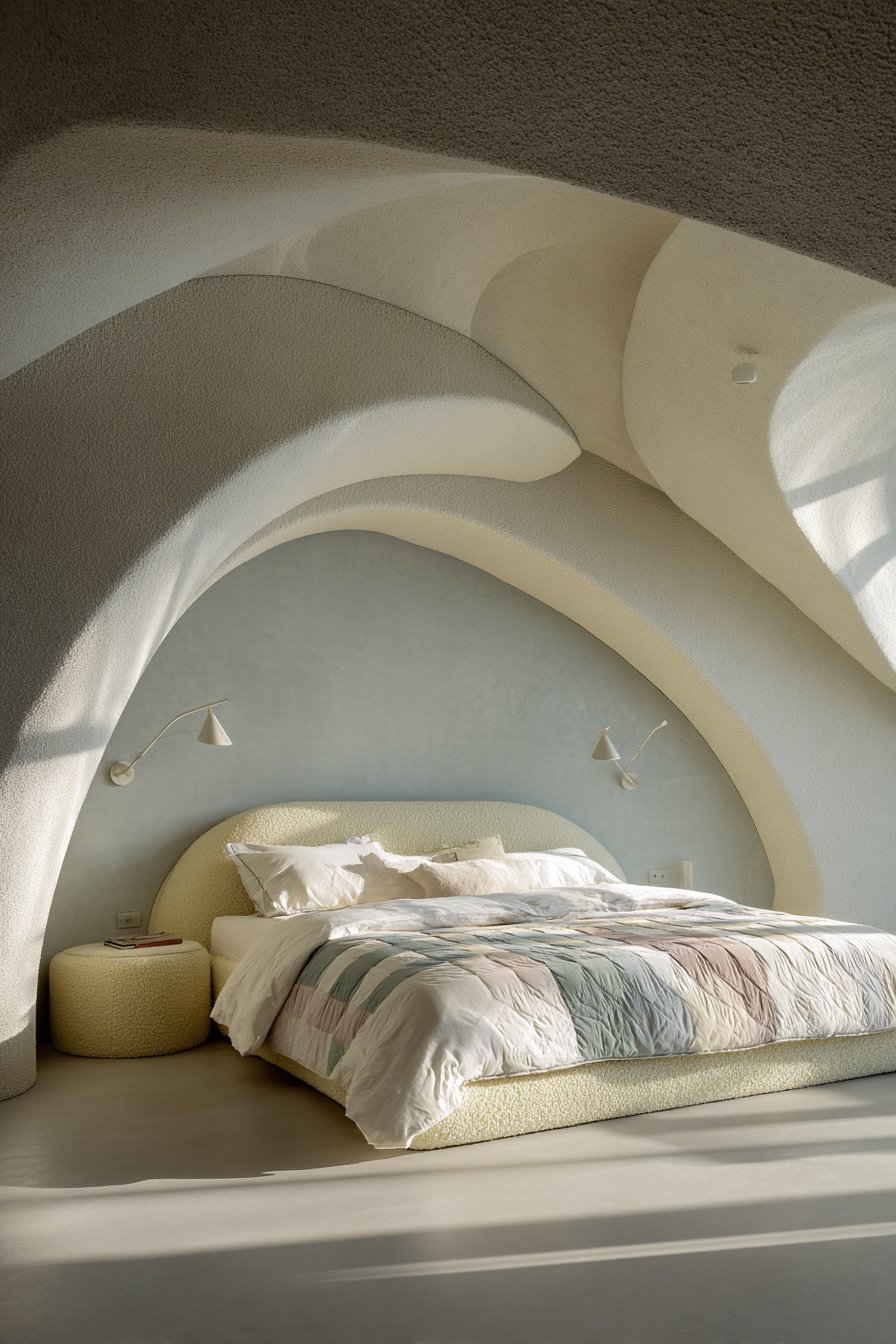 20. Sculptural Curved Headboard Statement