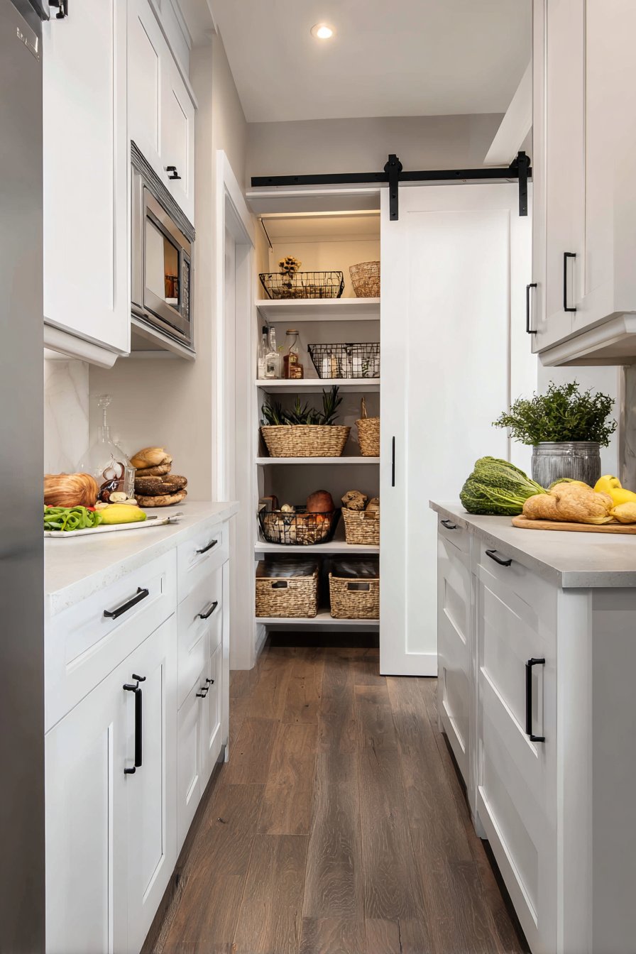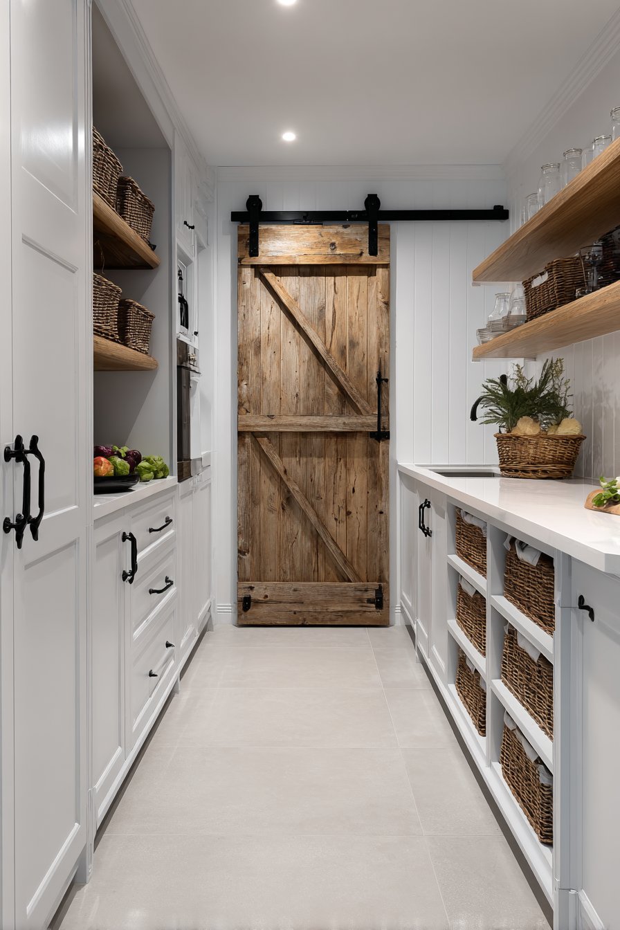 2. Sliding Barn Door Space-Saving Pantry