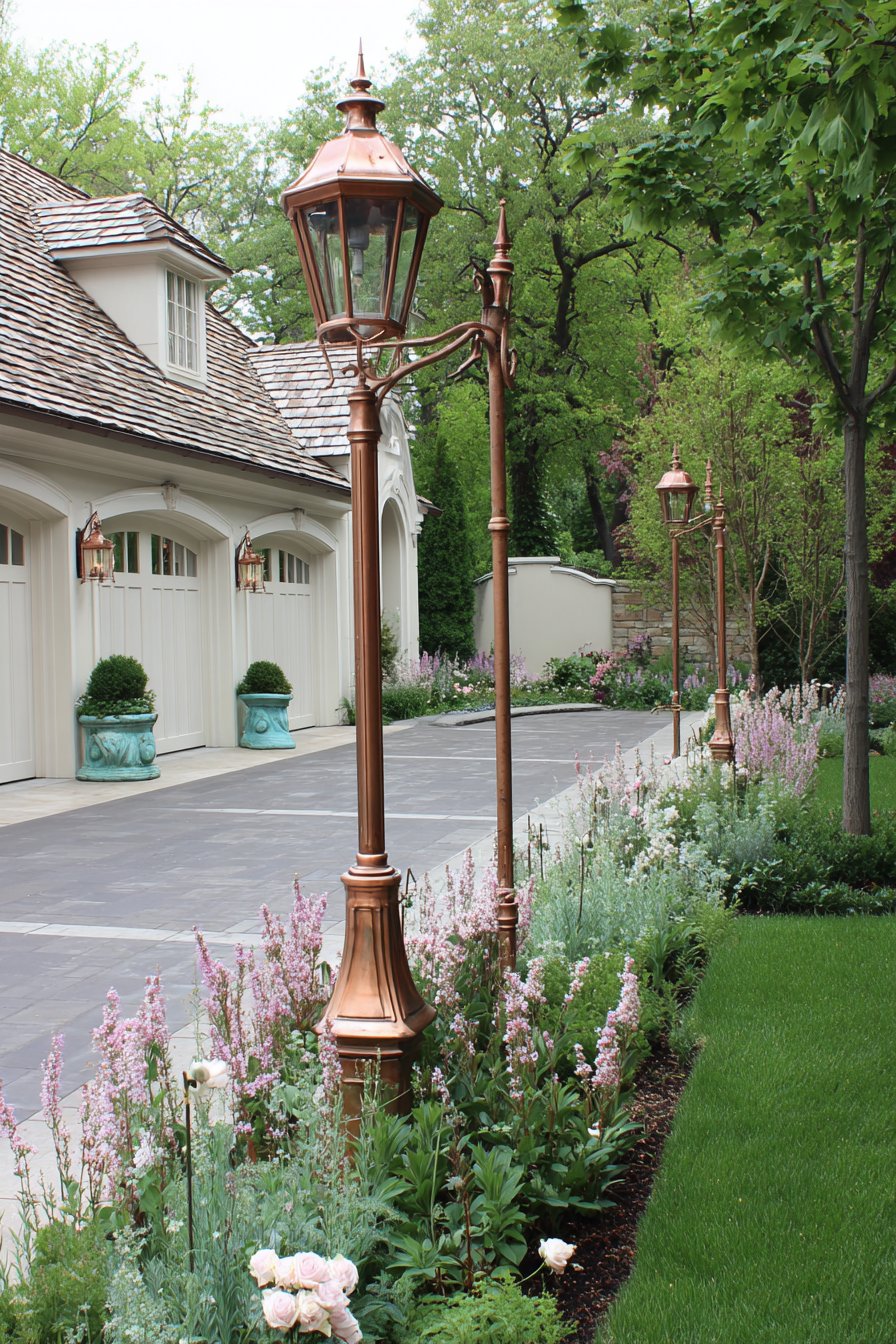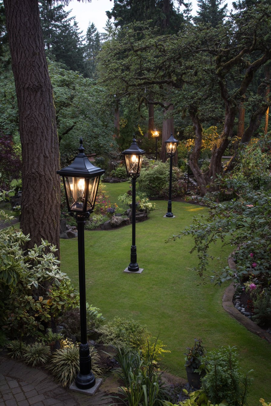 - Install perimeter lamp posts to define large yard boundaries