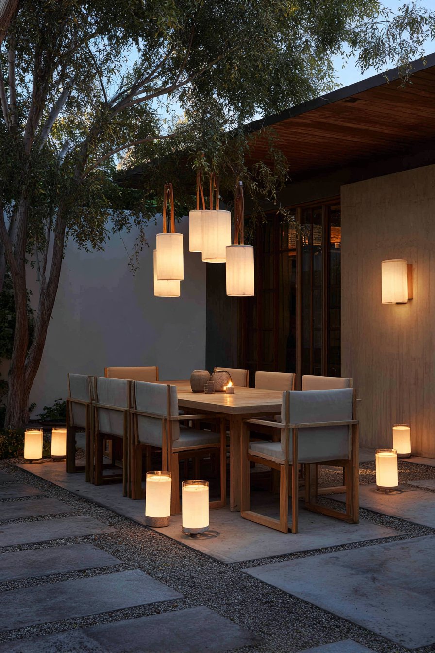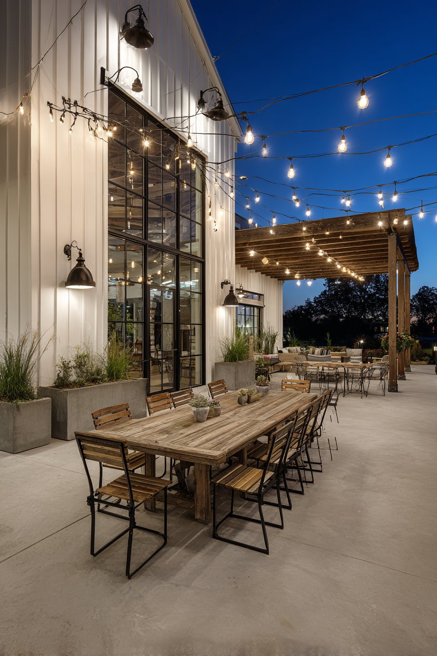 20. Scandinavian Outdoor Dining with Minimalist Fixtures