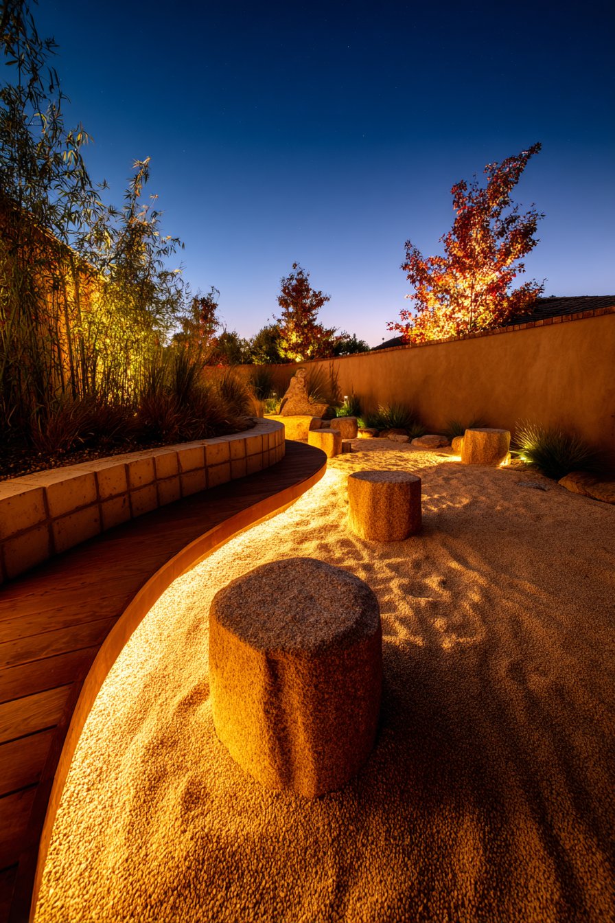 - Install underwater LEDs in water features for dynamic effects