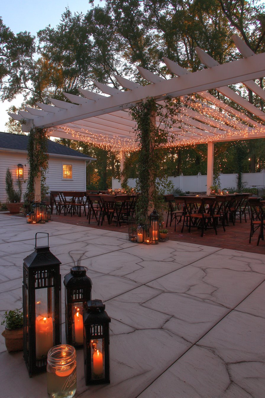 13. Festive Pergola with Decorative Bistro Lighting