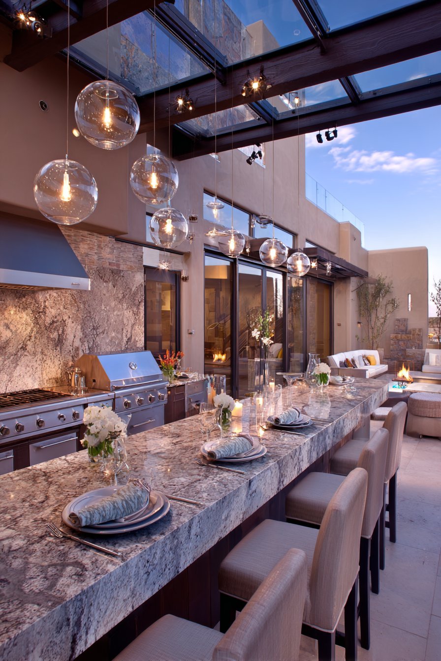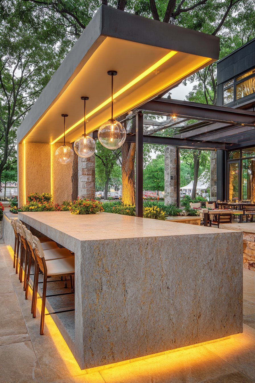 5. Contemporary Outdoor Kitchen with Integrated Task Lighting