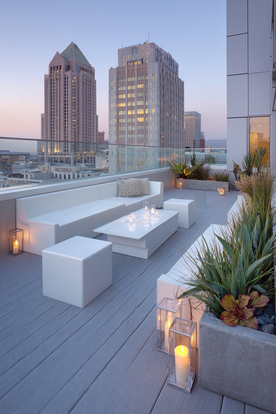 - Choose monochromatic color schemes for minimalist rooftop sophistication