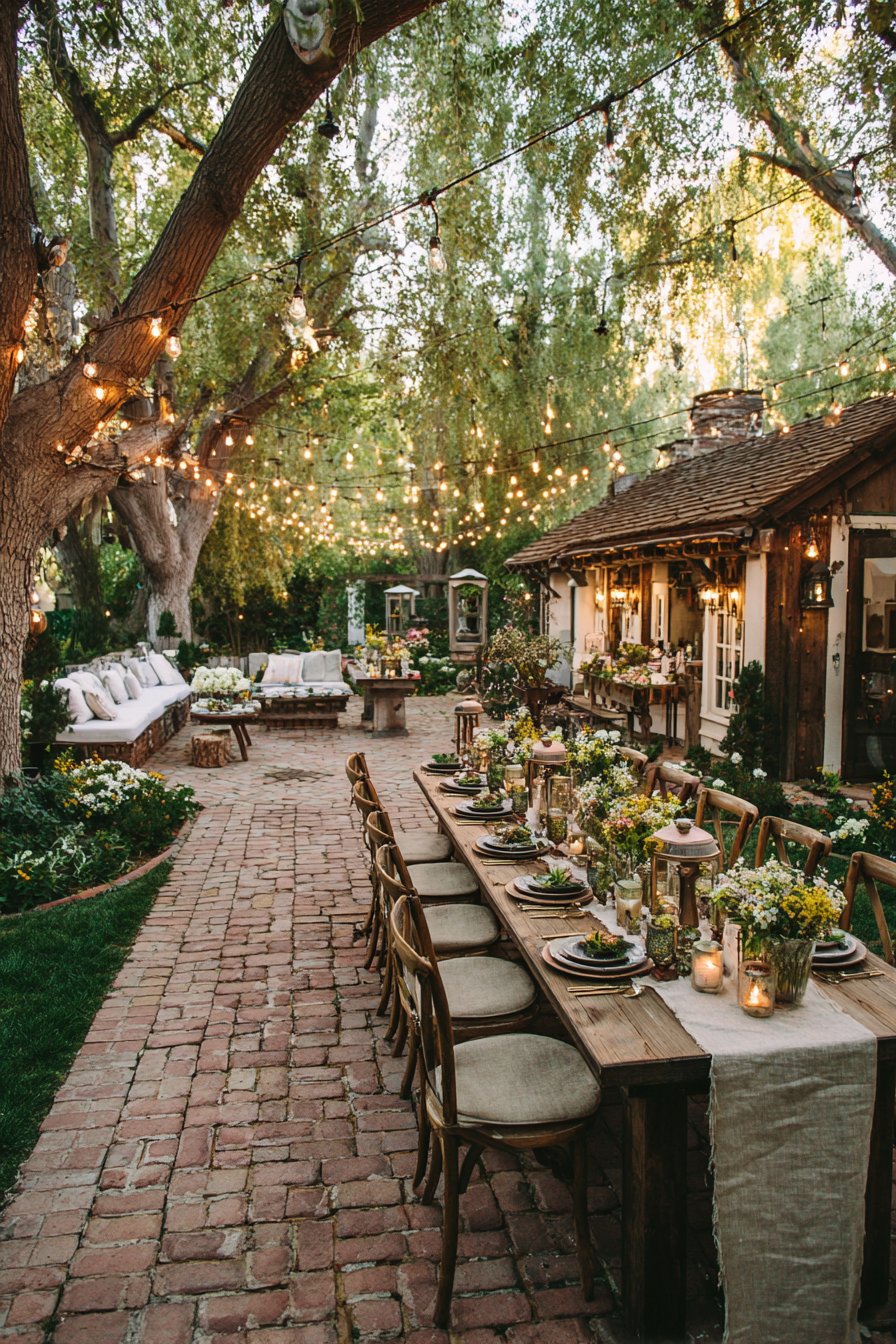 1. Intimate Backyard Evening with Rustic Farmhouse Charm