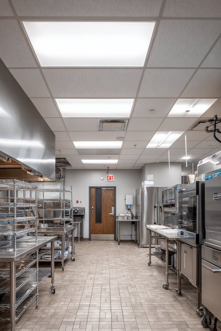 - Install linear fixtures centered in corridor ceilings