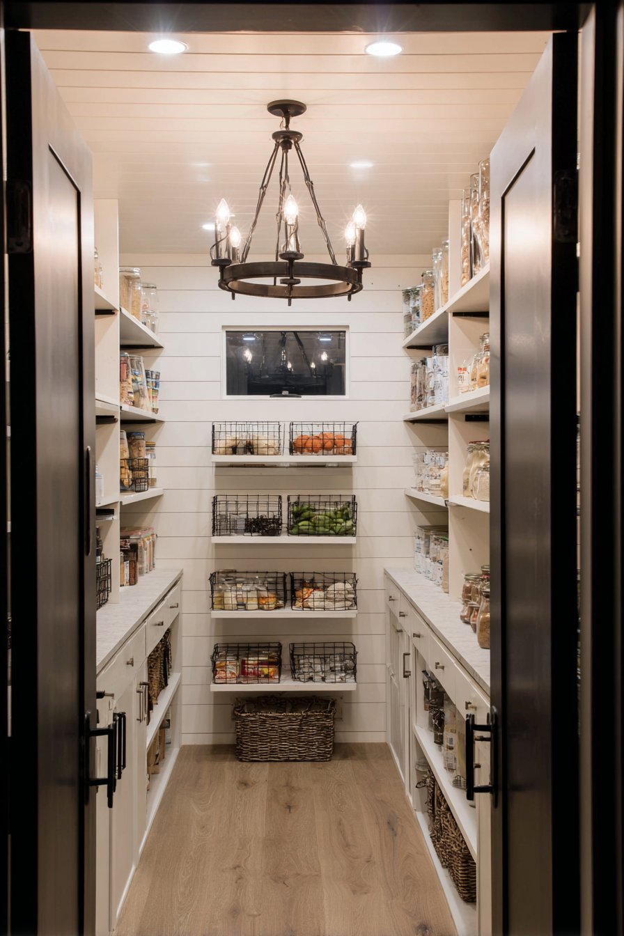 - Center chandeliers in walk-in pantries for balanced illumination