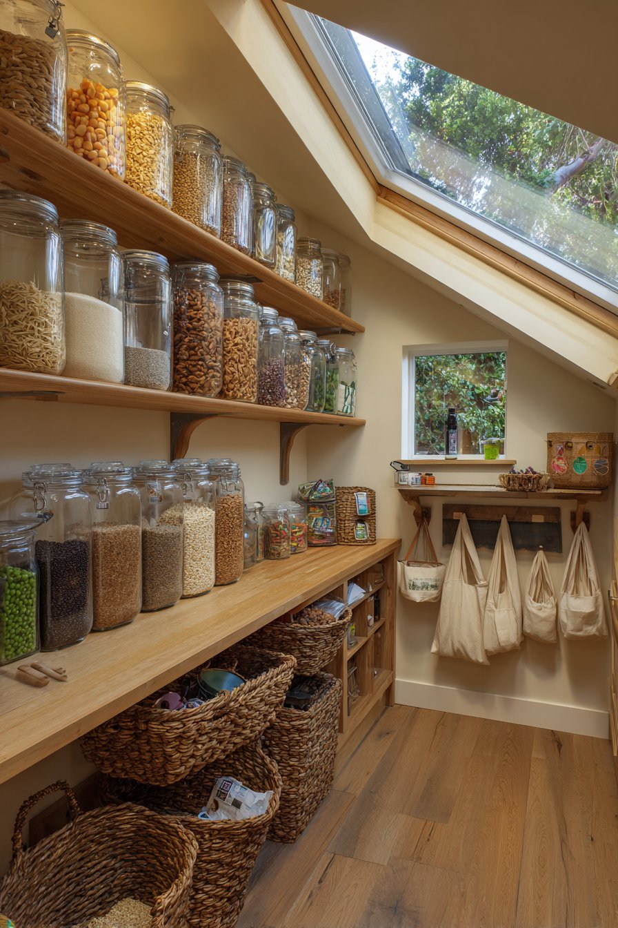 - Install wall-mounted gravity dispensers for bulk grains and dried goods