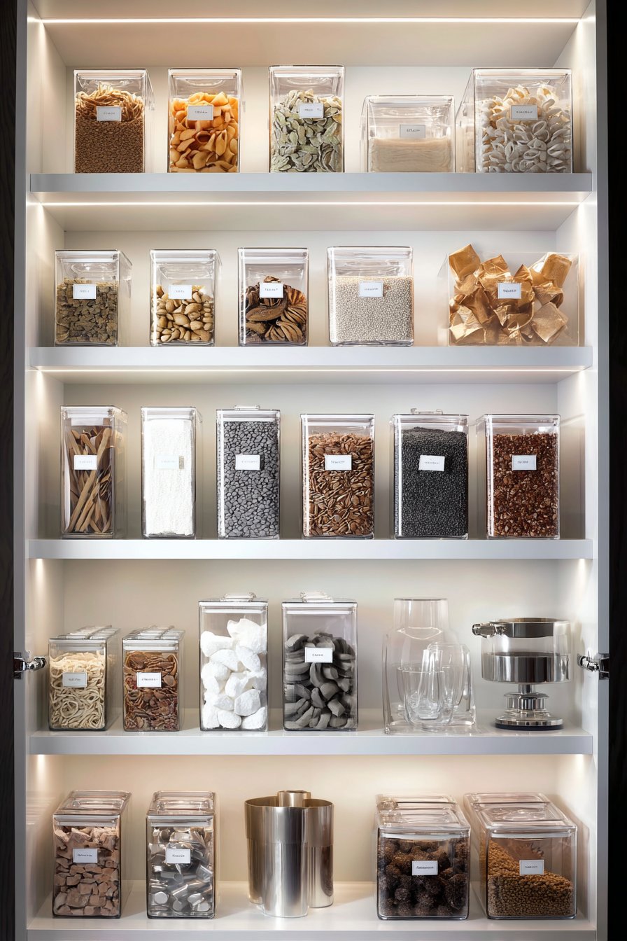 - Use uniform glass containers with labels for cohesive, organized appearance