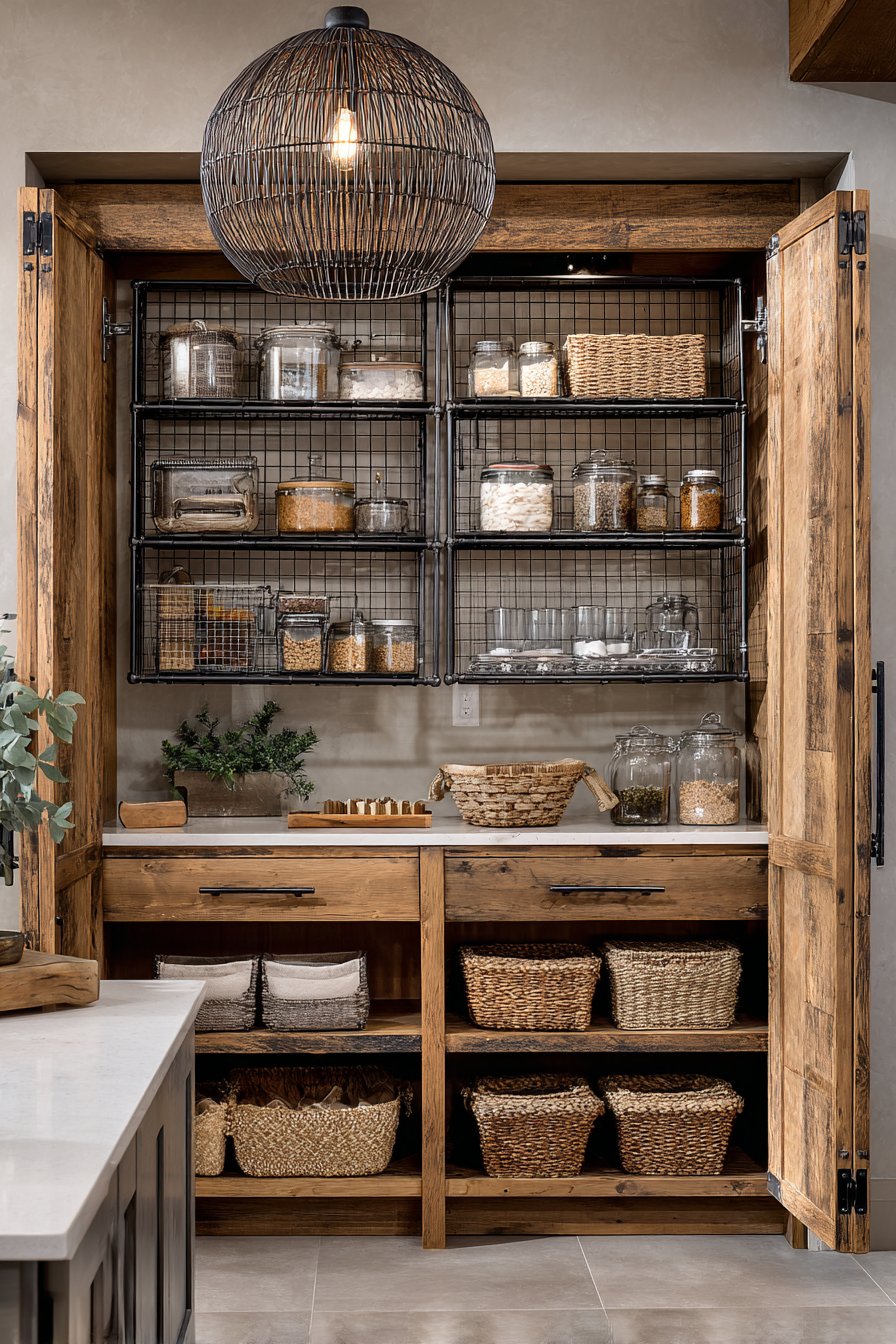 4. Farmhouse Rustic Wire Basket Pantry