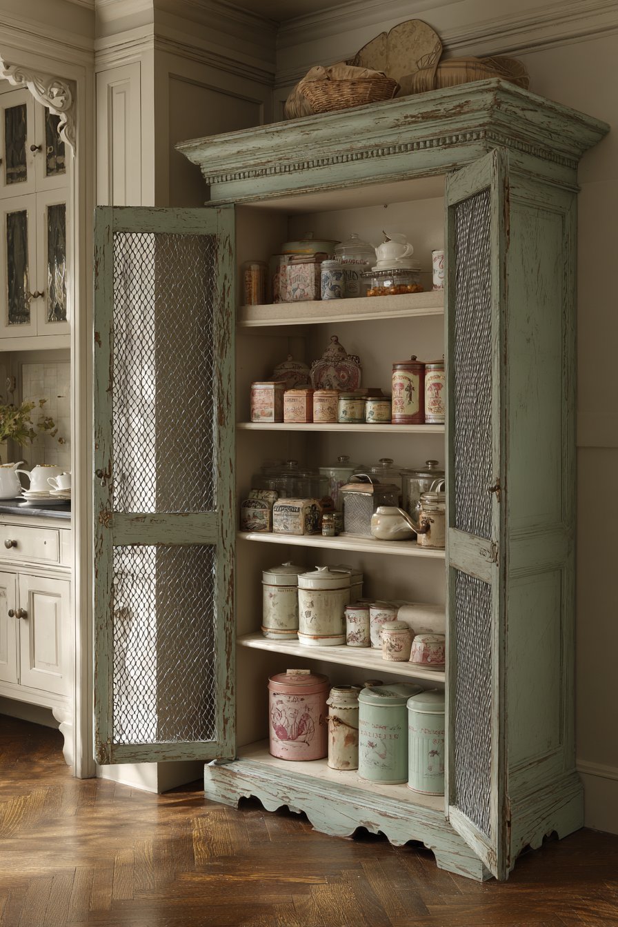 19. Vintage Shabby Chic Sage Green Pantry