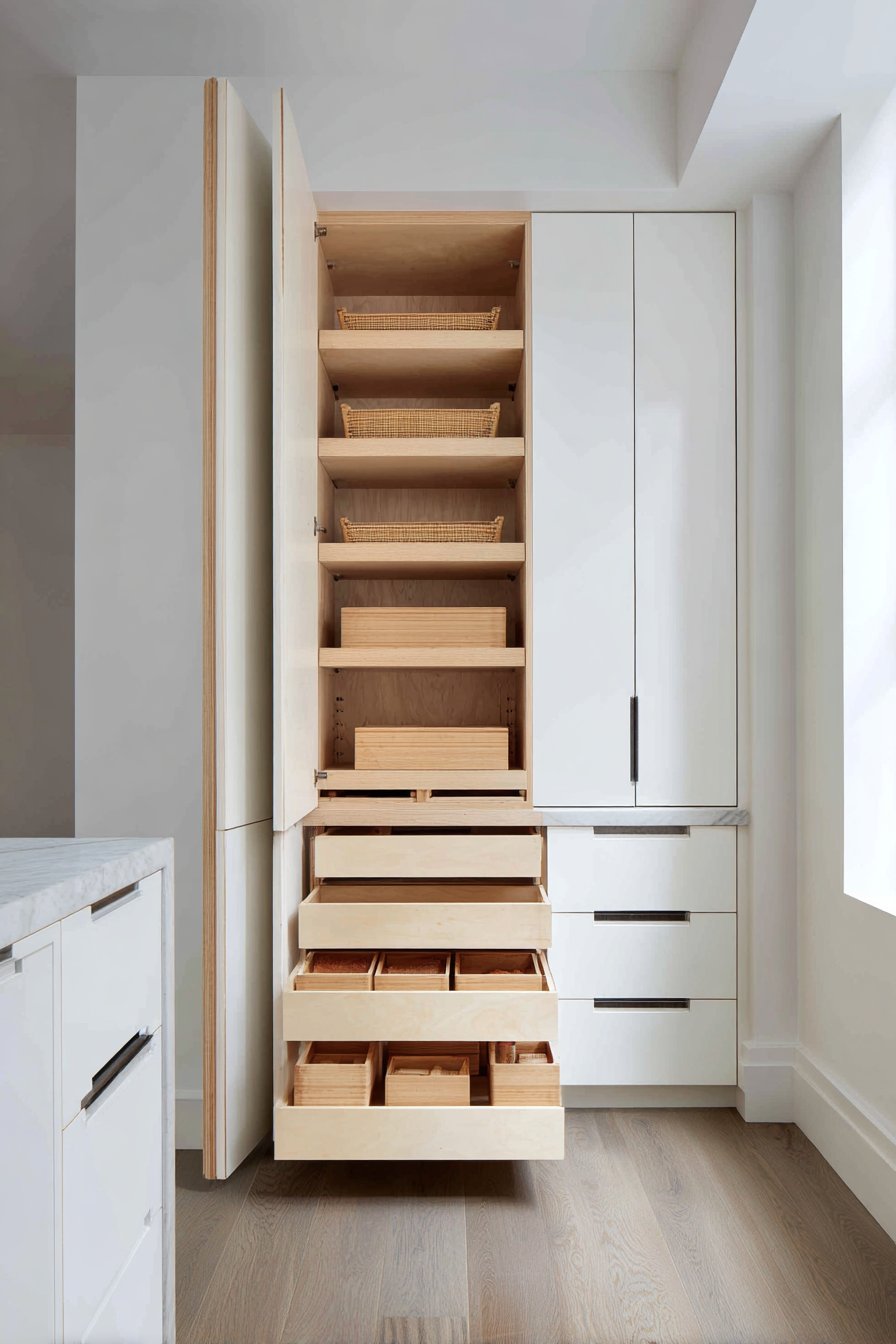 8. Scandinavian Minimalist Birch Pantry