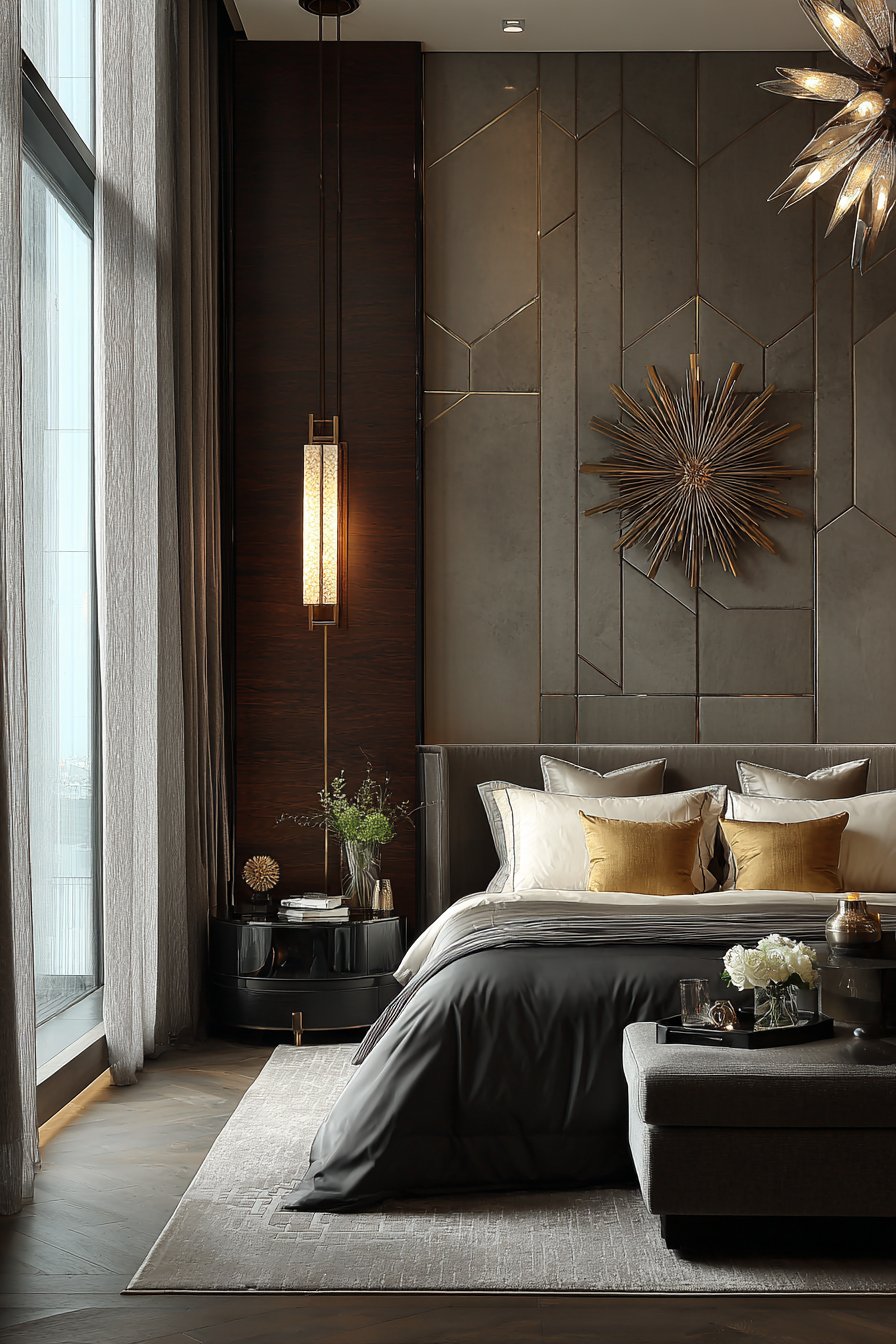 Art Deco design brings glamour through geometry and materials. The style celebrates craftsmanship and luxurious finishes. This bedroom demonstrates how historical styles remain relevant when executed with quality. The bold geometry creates visual interest without overwhelming the space.