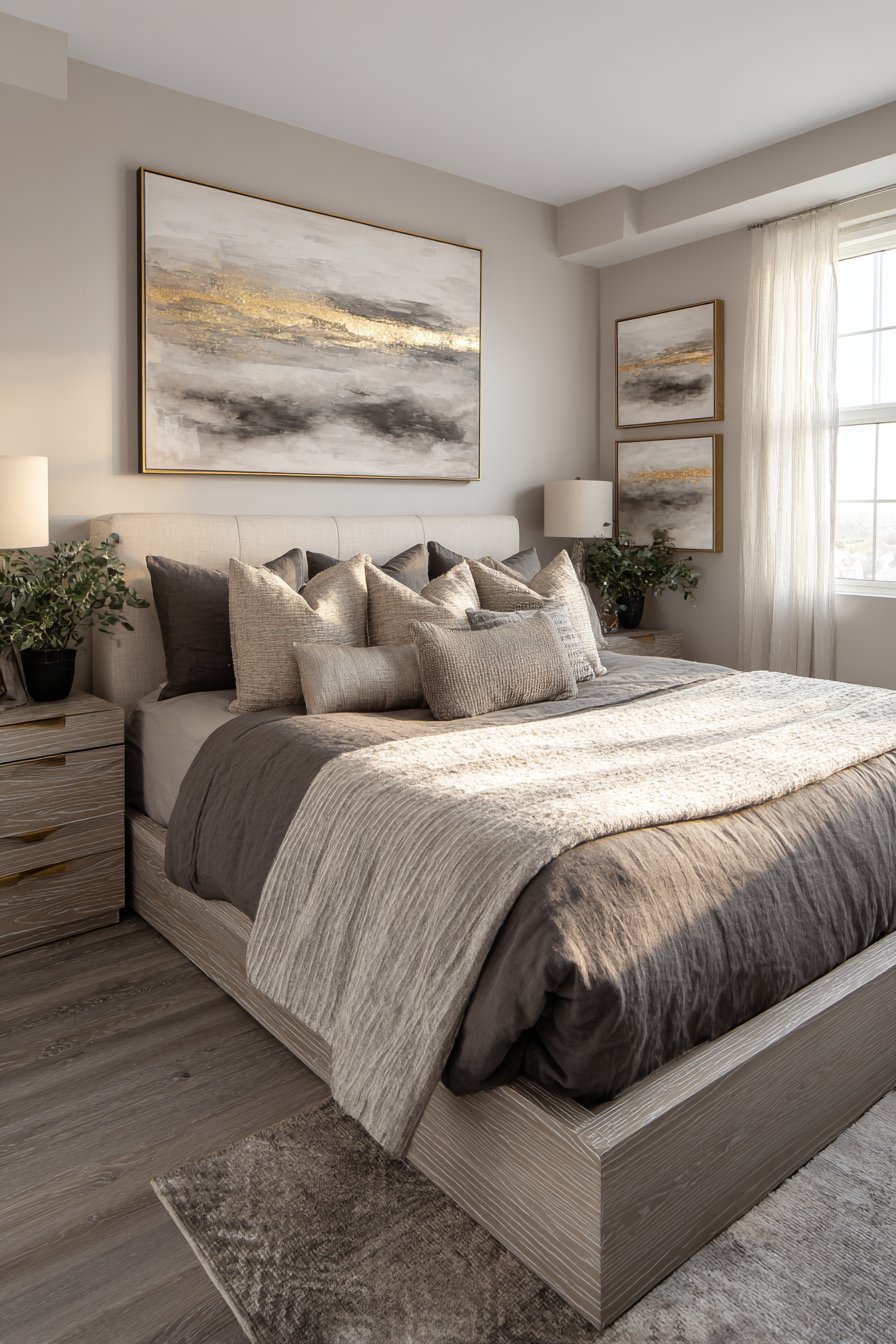 - Choose matching upholstered bed frames for cohesive aesthetics