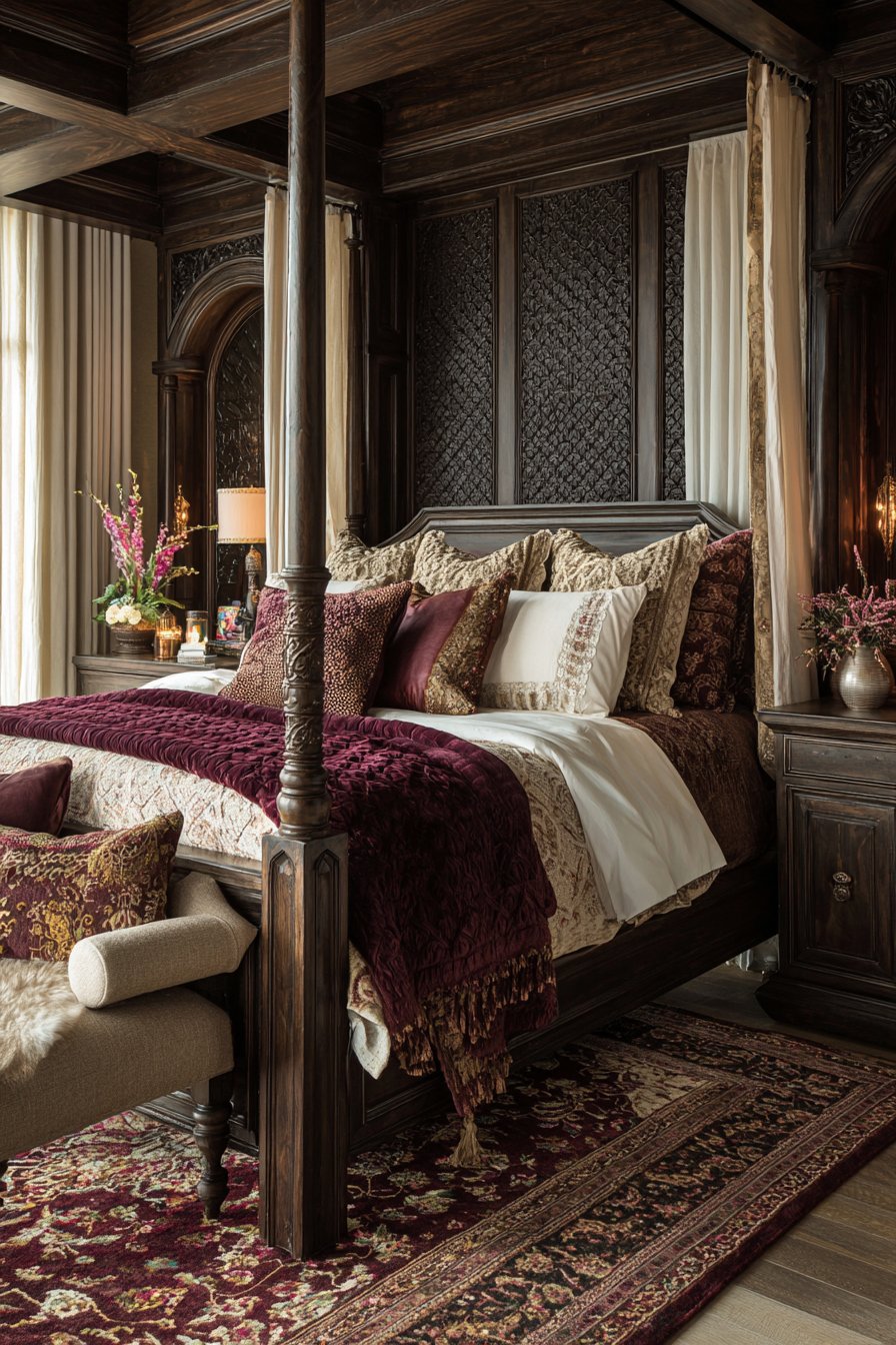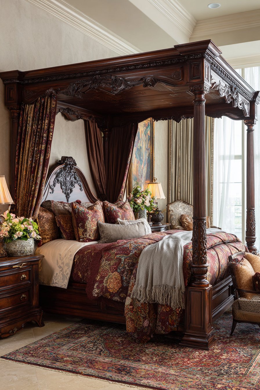 - Invest in four-poster beds with hand-carved details for lasting value