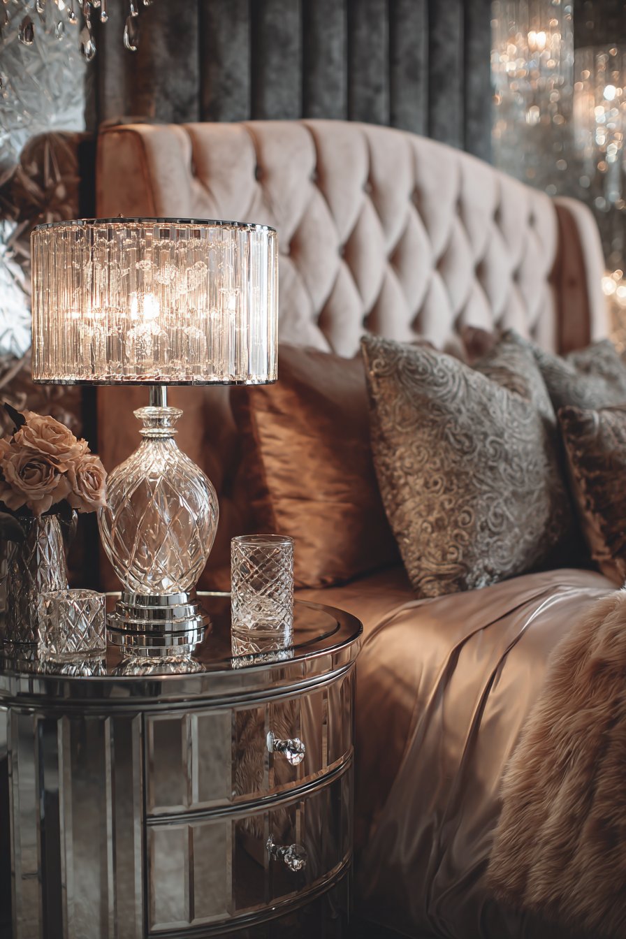 - Use crystal lamps with metallic bases for cohesive glamour