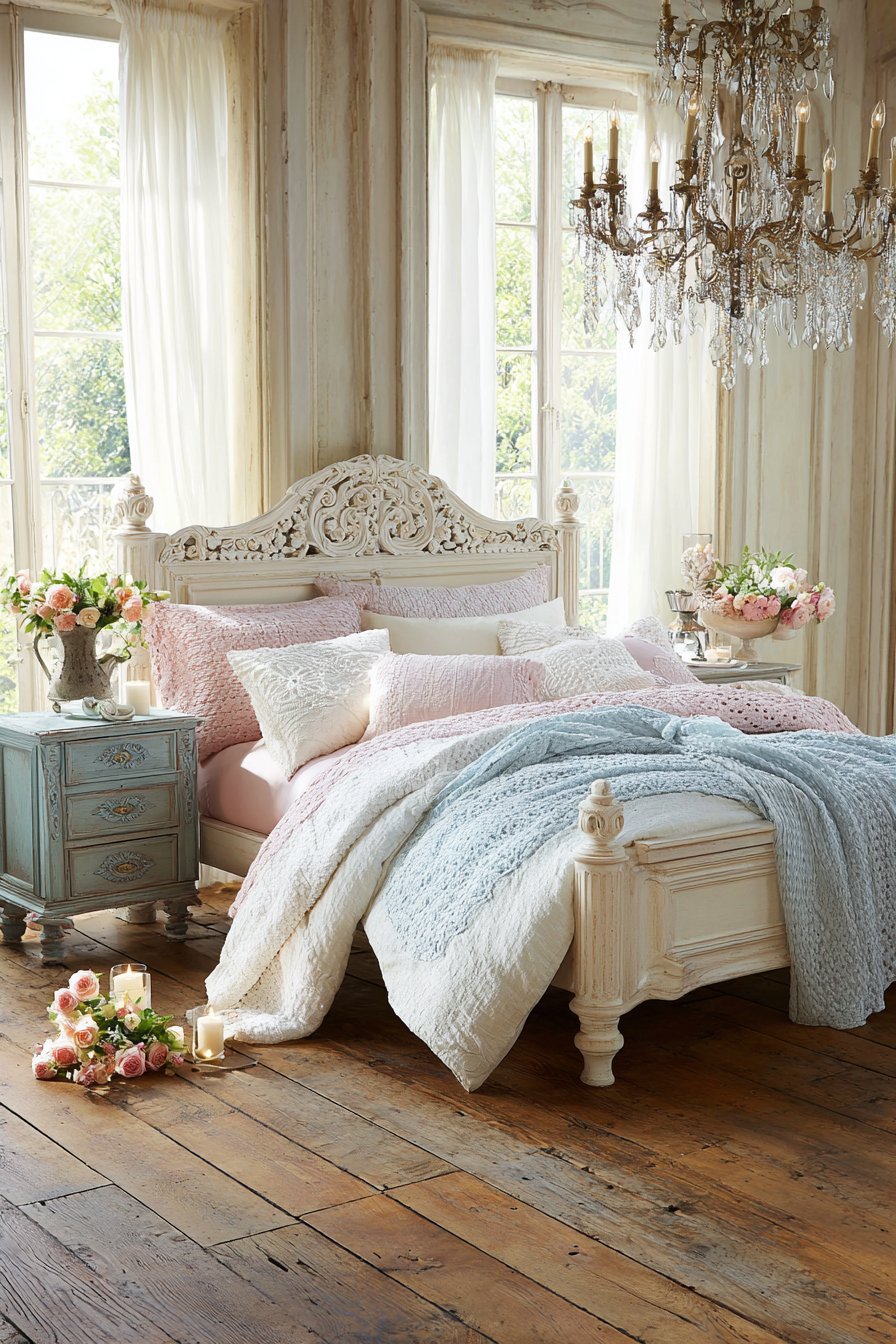 13. Shabby Chic Pastels with Crocheted Vintage Charm