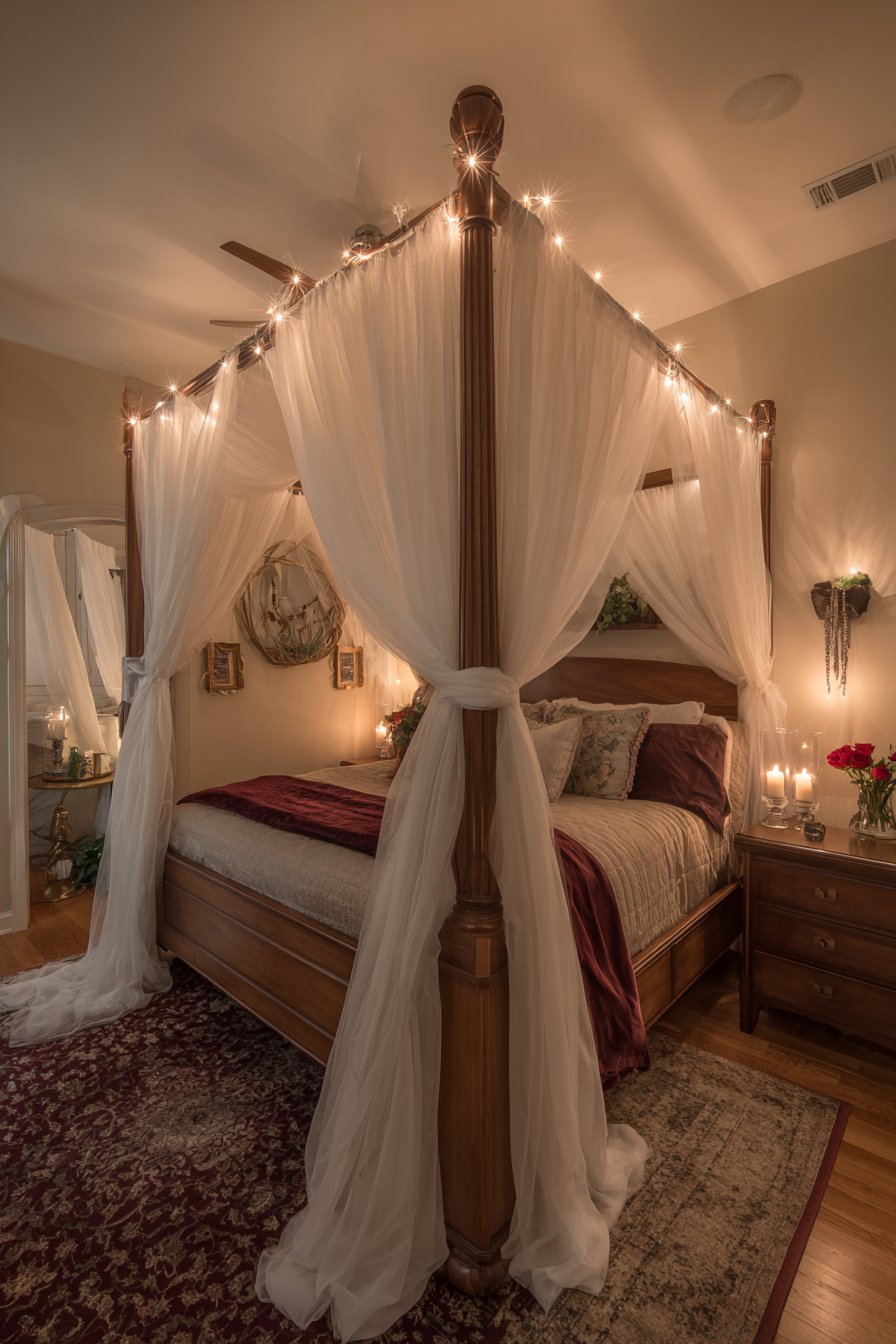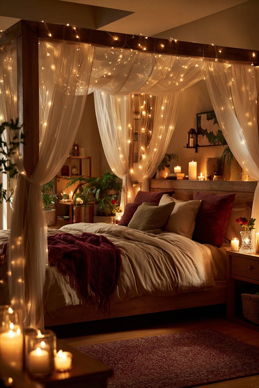 2. Gauze Canopy Sanctuary with String Light Magic