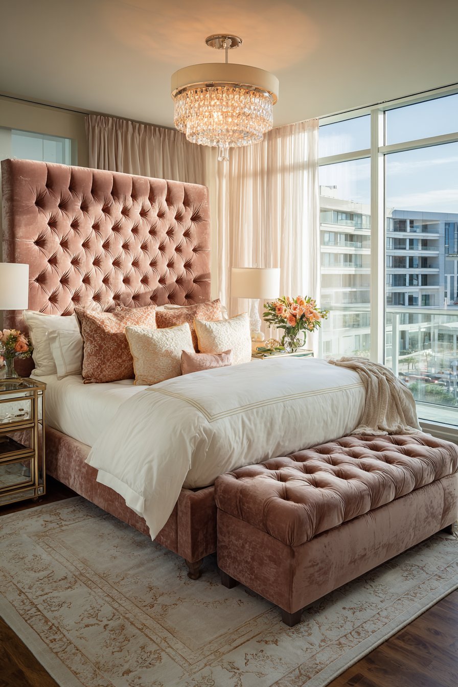 20. Rose Velvet Tufted Drama with Crystal Accents