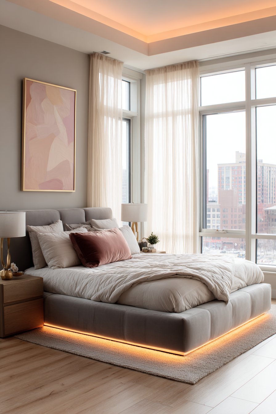 - Choose platform beds with integrated LED lighting for modern functionality and ambiance